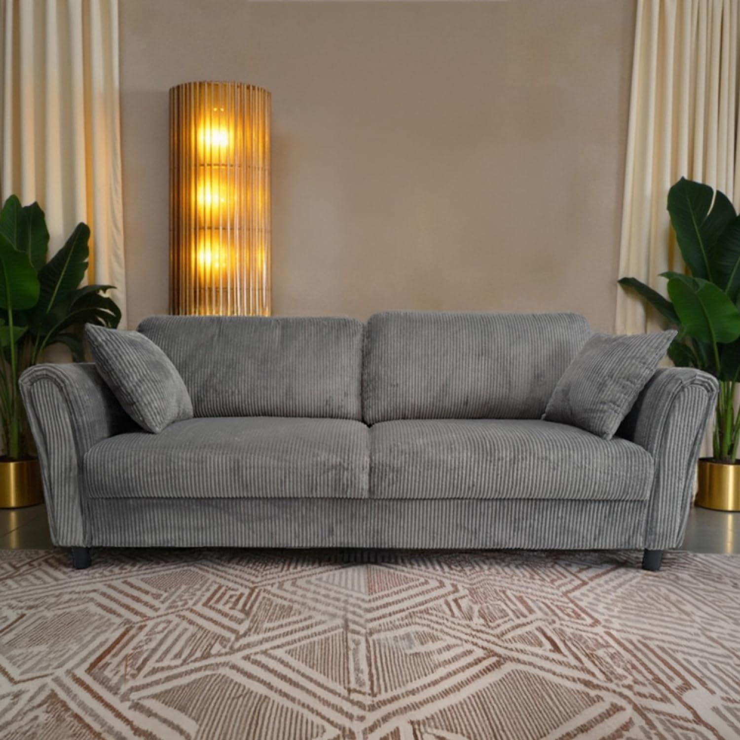 Détails: Canapé droit 4 places en velours côtelé gris foncé