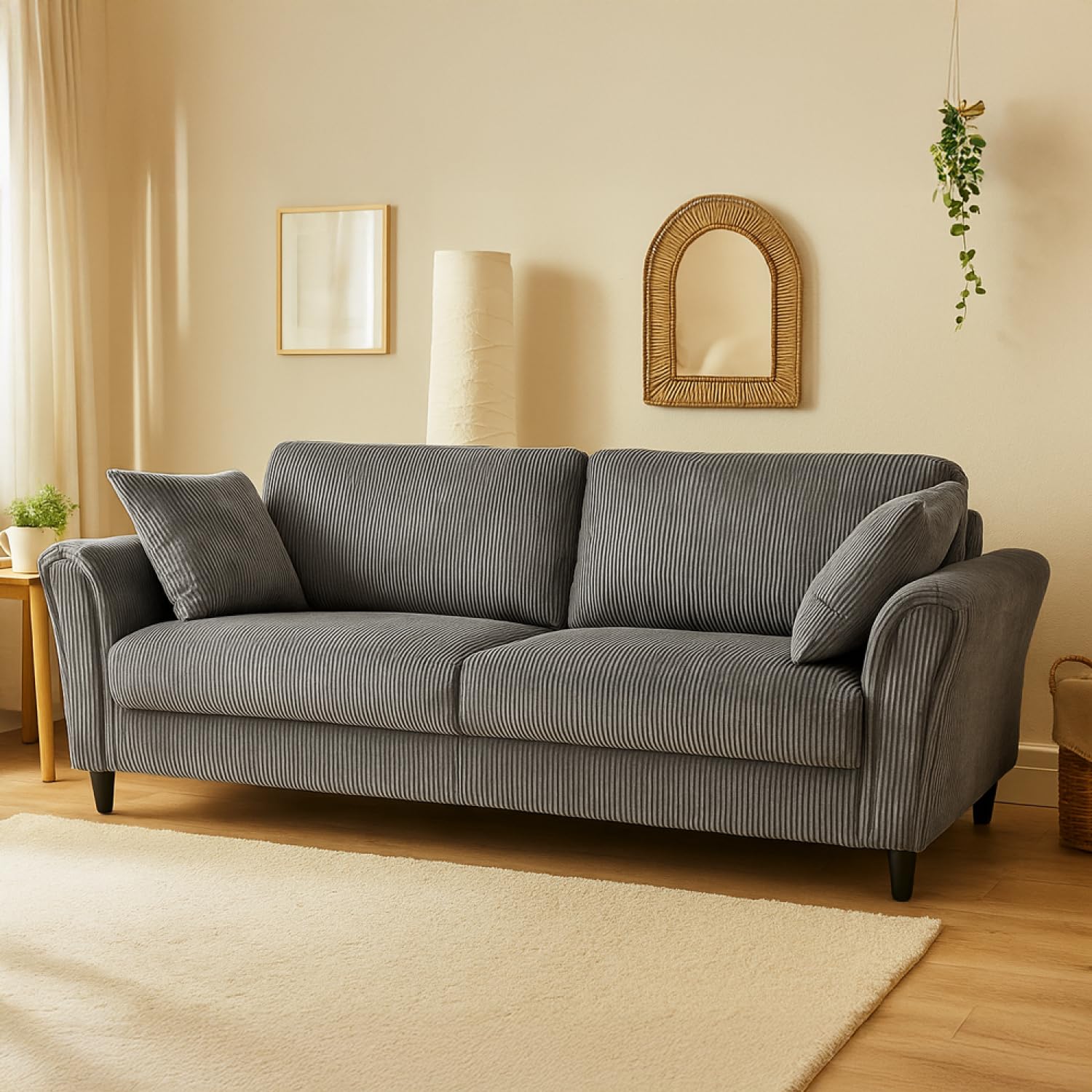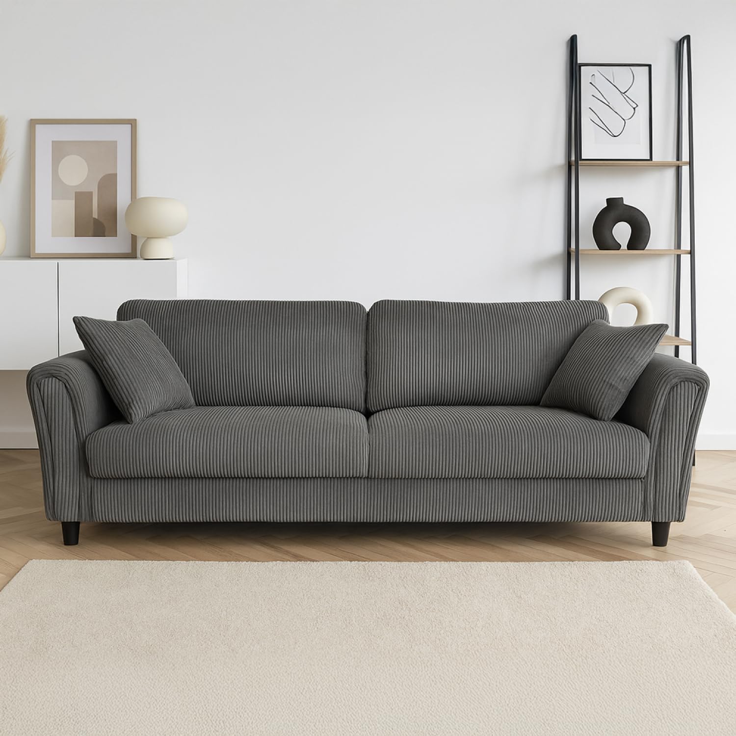 CONCEPT USINE | Canapé Droit 4 Places Lucerne Gris Foncé | Velours Côtelé Doux | Confort Ferme | Design Arrondi et Moderne | Structure Bois | 2 Coussins Inclus | 212 cm de Longueur