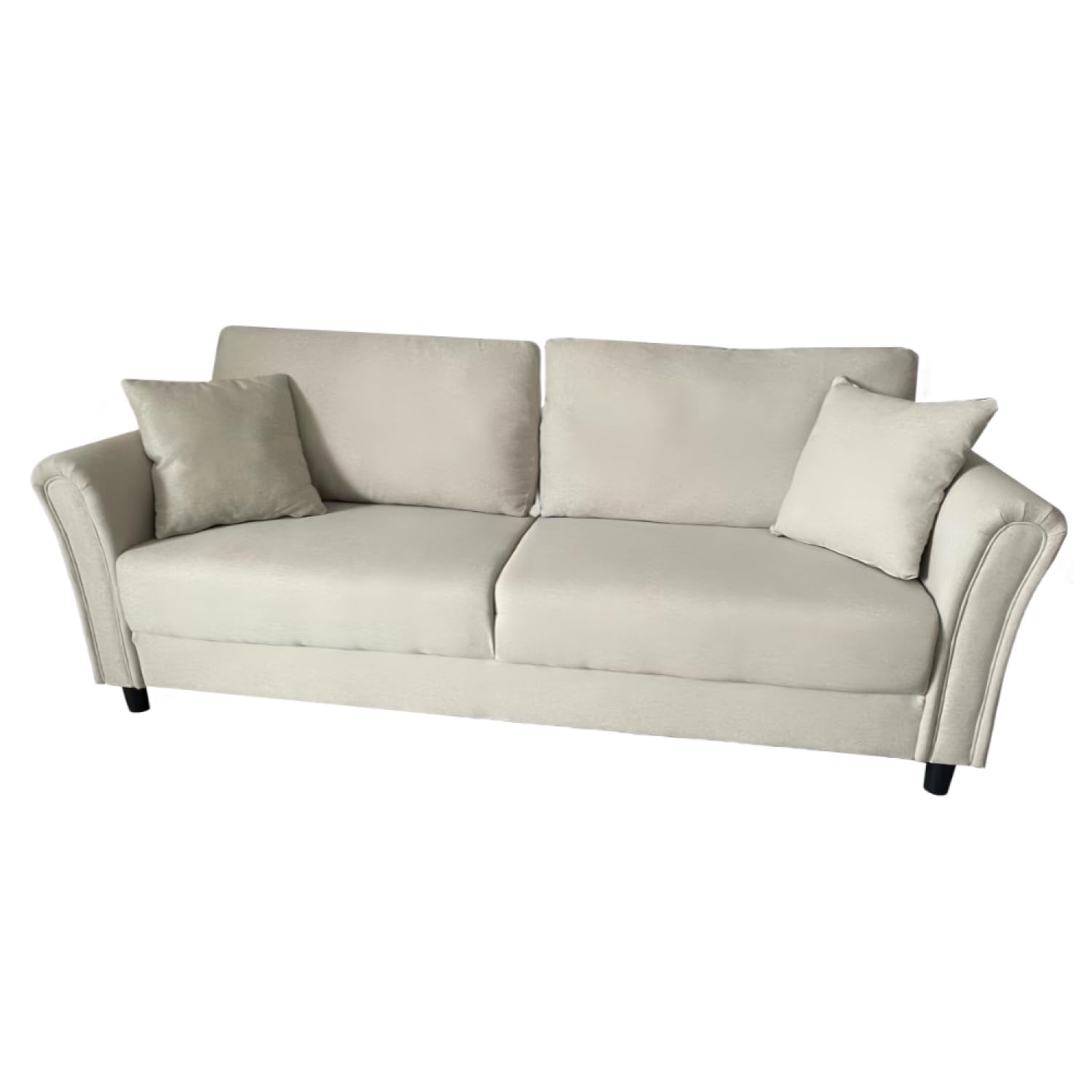 CONCEPT USINE | Canapé Droit en Tissu Effet Lin 4 Places | Lucerne Beige | Design Moderne et Elégant | Confort Luxueux | Coussins Assortis | Dimensions 212 x 78 x 87 cm