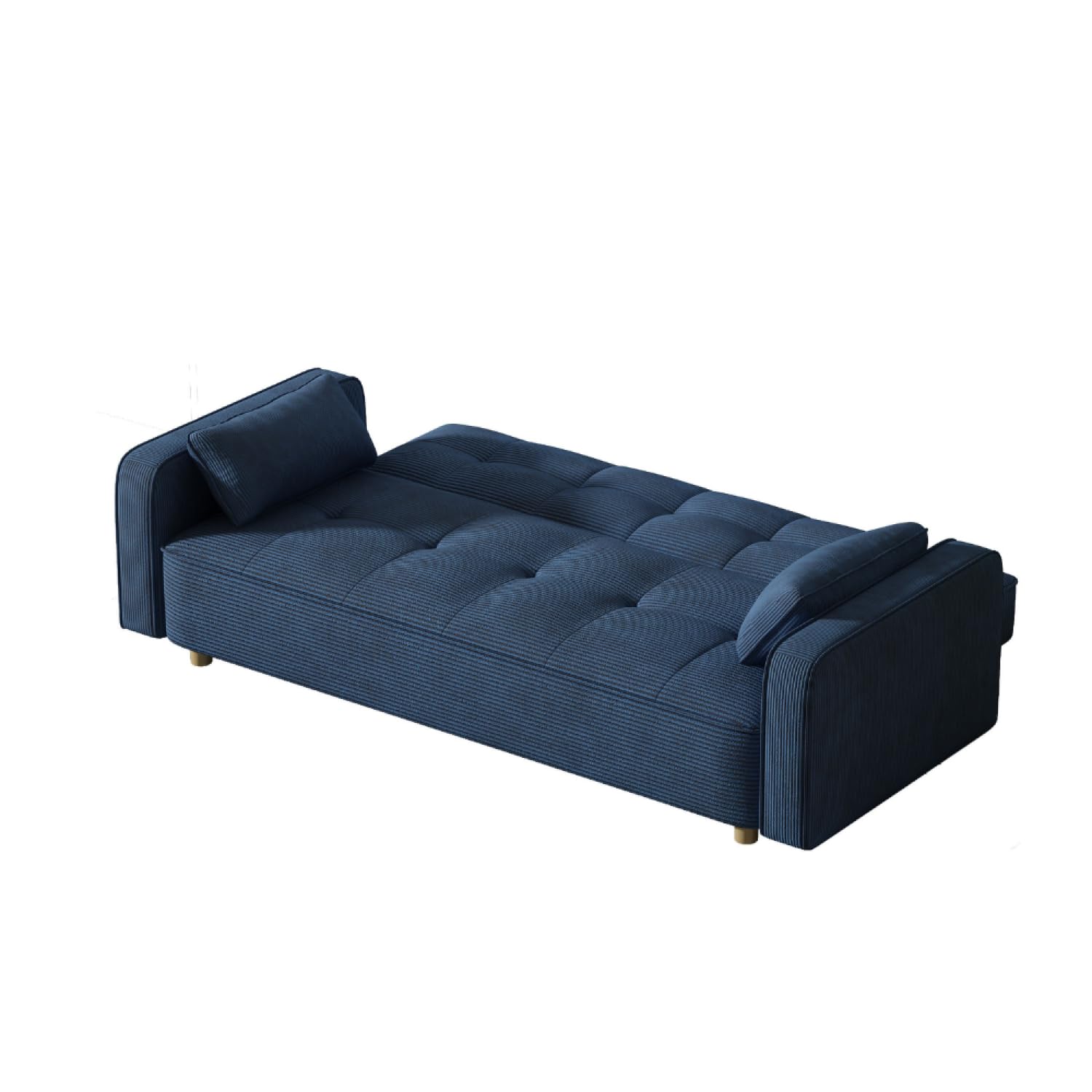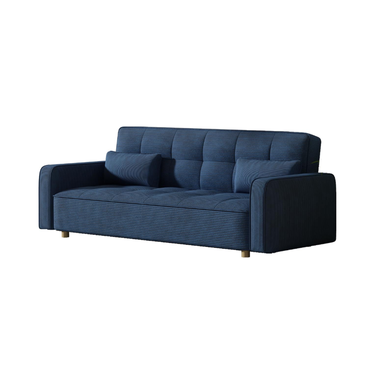 CONCEPT USINE | Canapé Scandinave Convertible 3 Places Velours Côtelé | COPENHAGUE Bleu | Canapé Droit Modulable Moderne avec Accoudoirs + 2 Coussins | Dossier & Assise Déhoussables | Largeur 213 cm