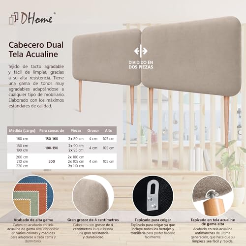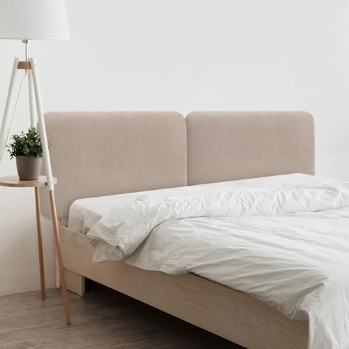 DHOME Tête de Lit Capitonnée Unie Arrondie en Tissu Aqualine avec Pieds pour Mur Têtes de Lit Acoustiques Absorbantes Tête de Lit Chambre à Coucher (Beige, 180cm Dual)