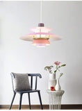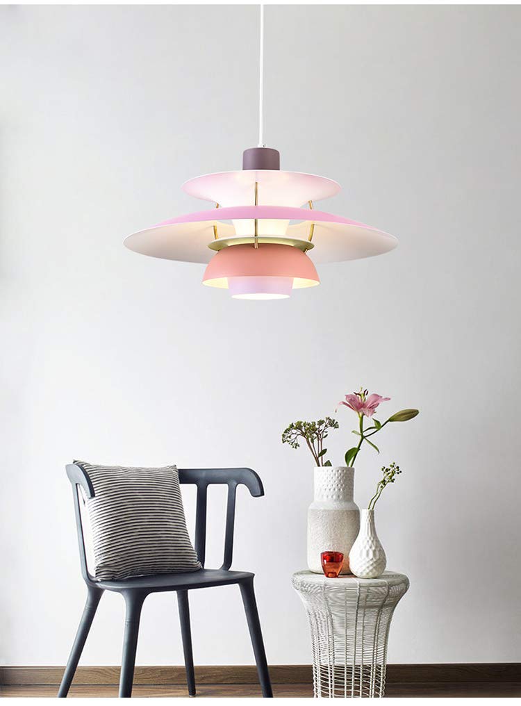 E27 Nordique Designer Danois Art Lustre,Ajustement Facile Multicouches Tête Unique Lustre,Moderne Restaurant Bar Cafe Pendant Light,Chambre Chevet,Simple Macaron Aluminium Lustre-Gradient violet 40cm