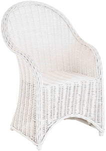 Fauteuil de salle à manger en rotin avec accoudoirs, blanc