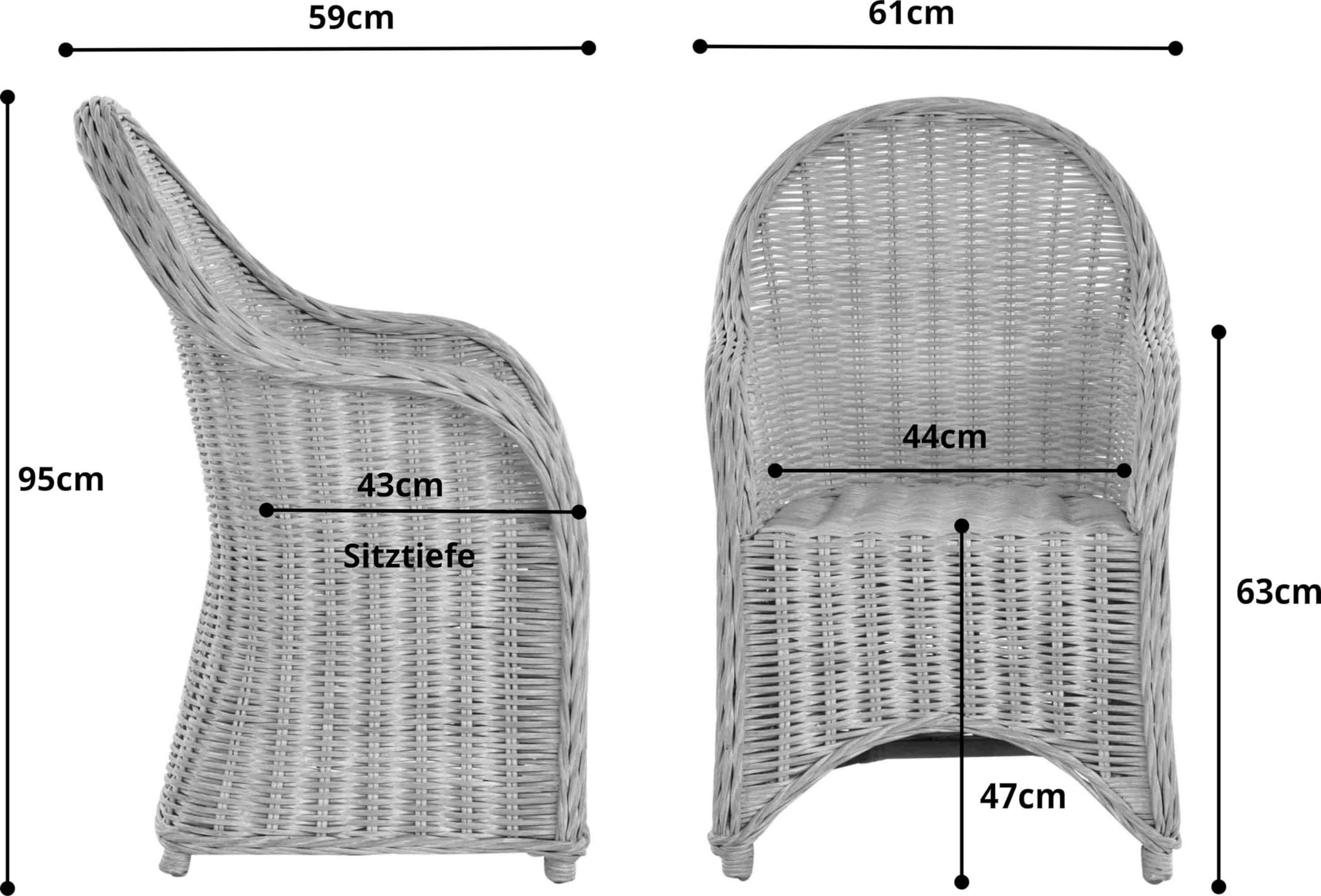 - Largeur : 61 cm, profondeur : 59 cm, hauteur : 95 cm, hauteur d'assise : environ 47 cm - Largeur d'assise : environ environ 43 cm