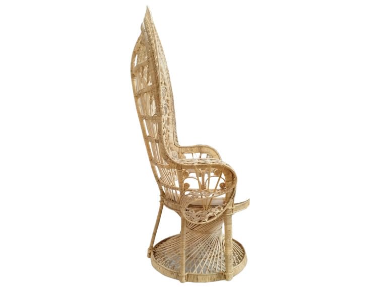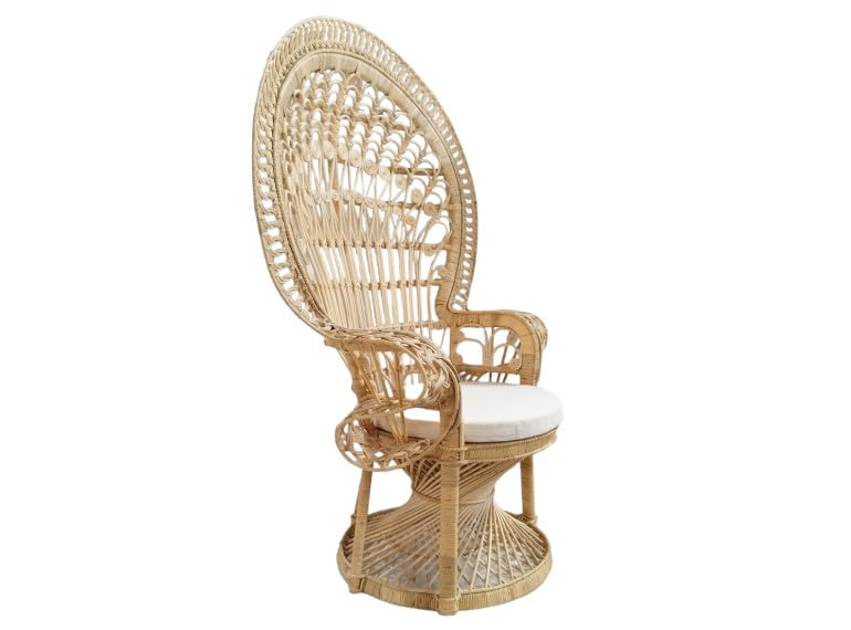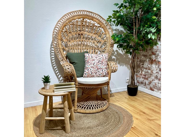 Fauteuil Emmanuelle H.147 cm en rotin tressé avec Un Coussin Blanc - Peacock