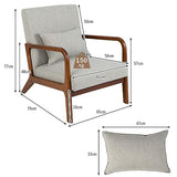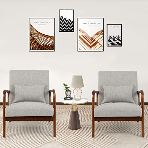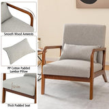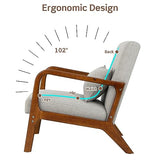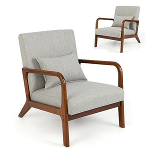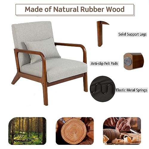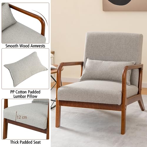 Fauteuil moderne rembourré avec pieds antidérapants en bois d'hévéa pour salon, chambre à coucher, bureau (gris avec soutien lombaire) assise confortable