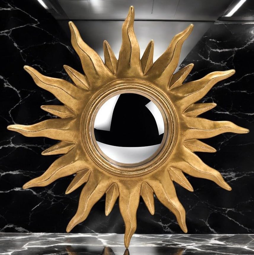 - DESIGN ÉLÉGANT: Miroir Convexe soleil doré avec de magnifiques rayons sculptés en relief, créant un effet décoratif spectaculaire pour votre intérieur