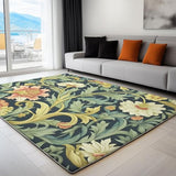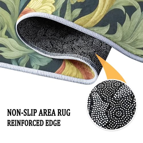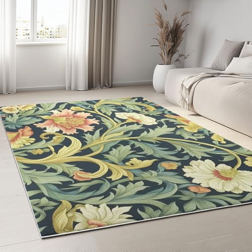 Générique Tapis de Salon 160 x 230 cm Tapis Poil Court Fin Doux Léger Résistant, Vignes Vintage Super Doux Fleurs Vigne Feuilles Vert Foncé pour Salle à Manger et Bureau Chambre Cuisine