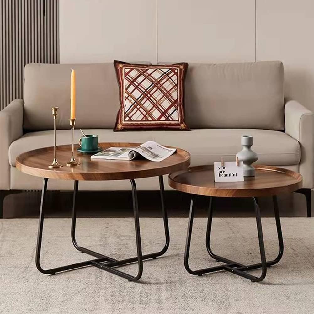 GQQDDD Table Basse Multifonctionnelle pour Salon Moderne, Petit Ménage Rond, Combinaison Table Basse, Plateau en Bois De Noyer Et Cadre en Métal Noir(Size:60x39cm,Color:Noyer)