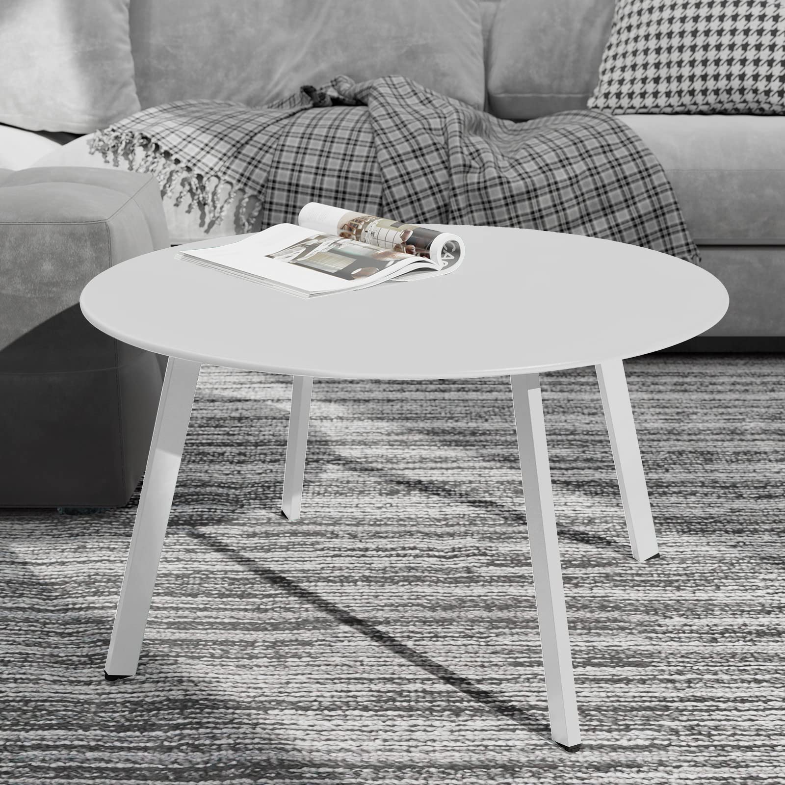 Grand patio Table Basse, Café Table, Acier de Première Qualité, Poids Léger, Table D’appoint Ronde latérale pour Bureau, Balcon, Cuisine et la Chambre (Blanc)