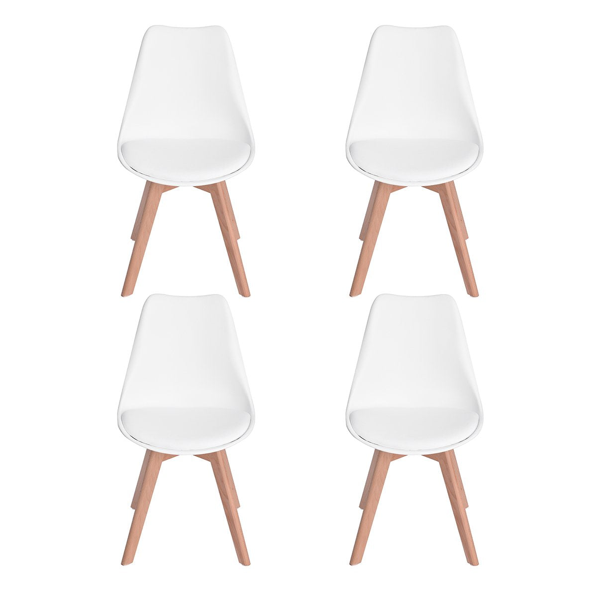 H.J WeDoo Lot de 4 chaises de Salle à Manger scandinaves, Chaises Rétro Bois de hêtre Massif- Blanche