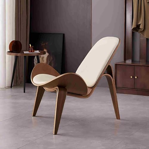 Homary Fauteuil Salon 1 Place, Chaise Coiffeuse pour Chambre en Cuir Doux, Base Tripode en Bois Noyer Design Moderne Siège Rembourré pour Salon Bureau Confort Élégant