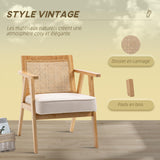 HOMCOM Fauteuil de Salon Confortable Chaise en Rotin avec Coussin épais- Dossier en cannage - Assise Profonde - Structure en Bois hévéa Aspect Lin Beige