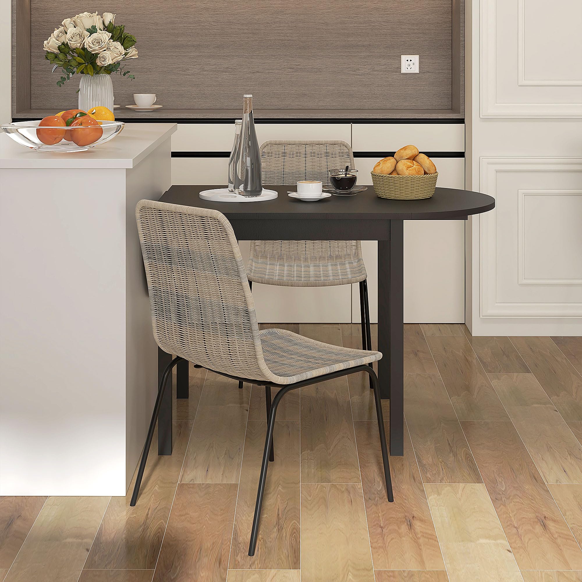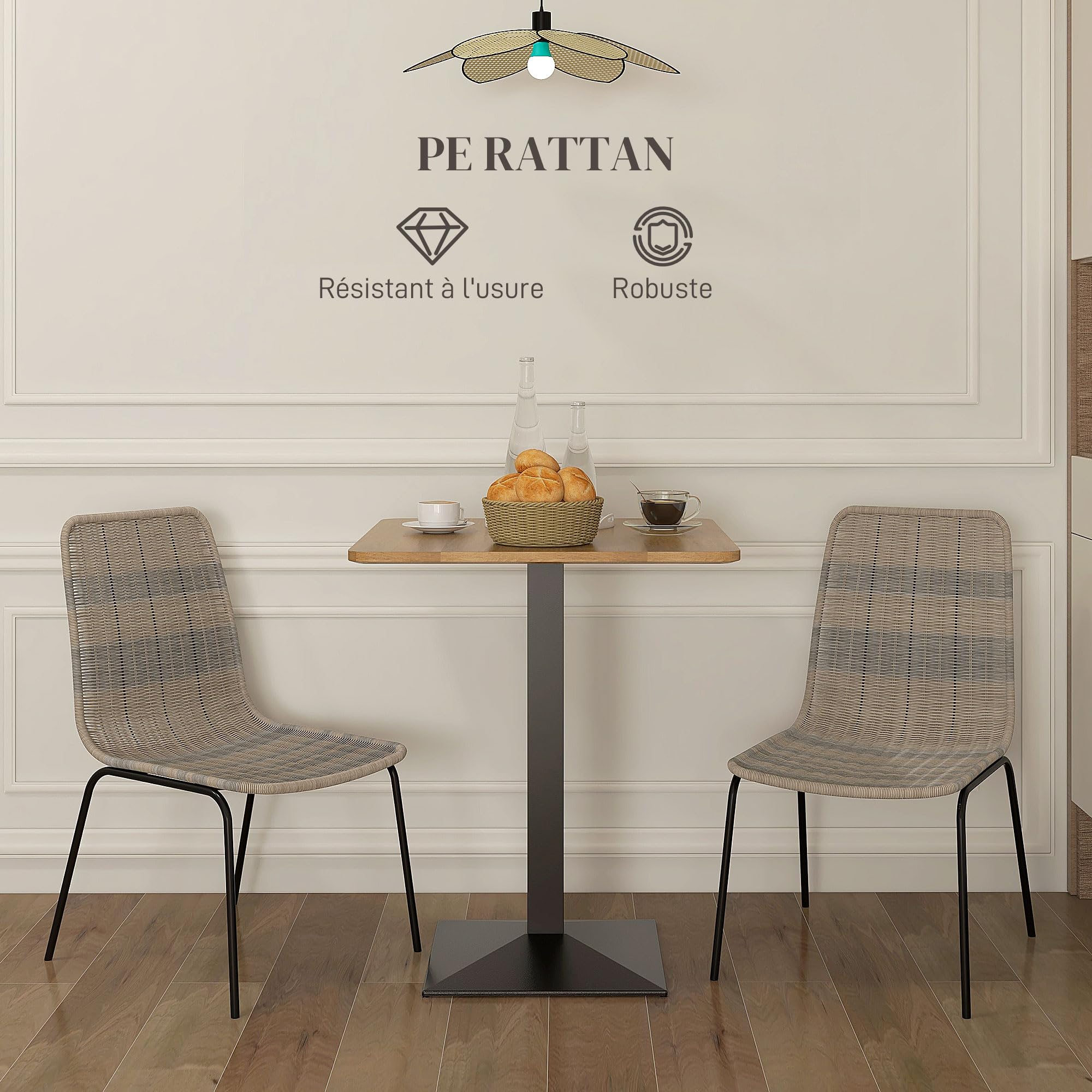 HOMCOM Lot de 2 chaises de Salle à Manger élégantes Chaise de Cuisine Chaise rotin piètement Acier, pour Salle à Manger, Salon, Cuisine