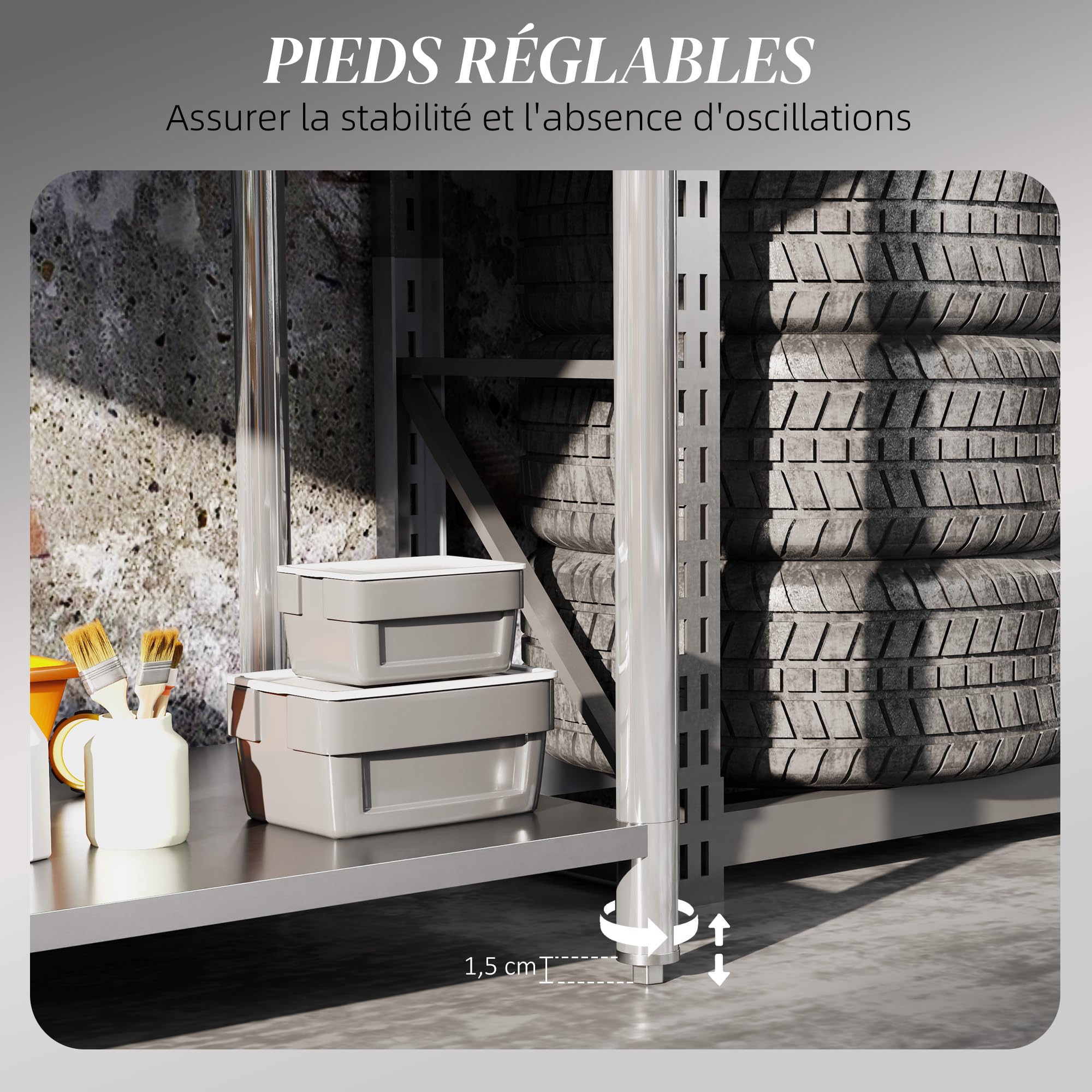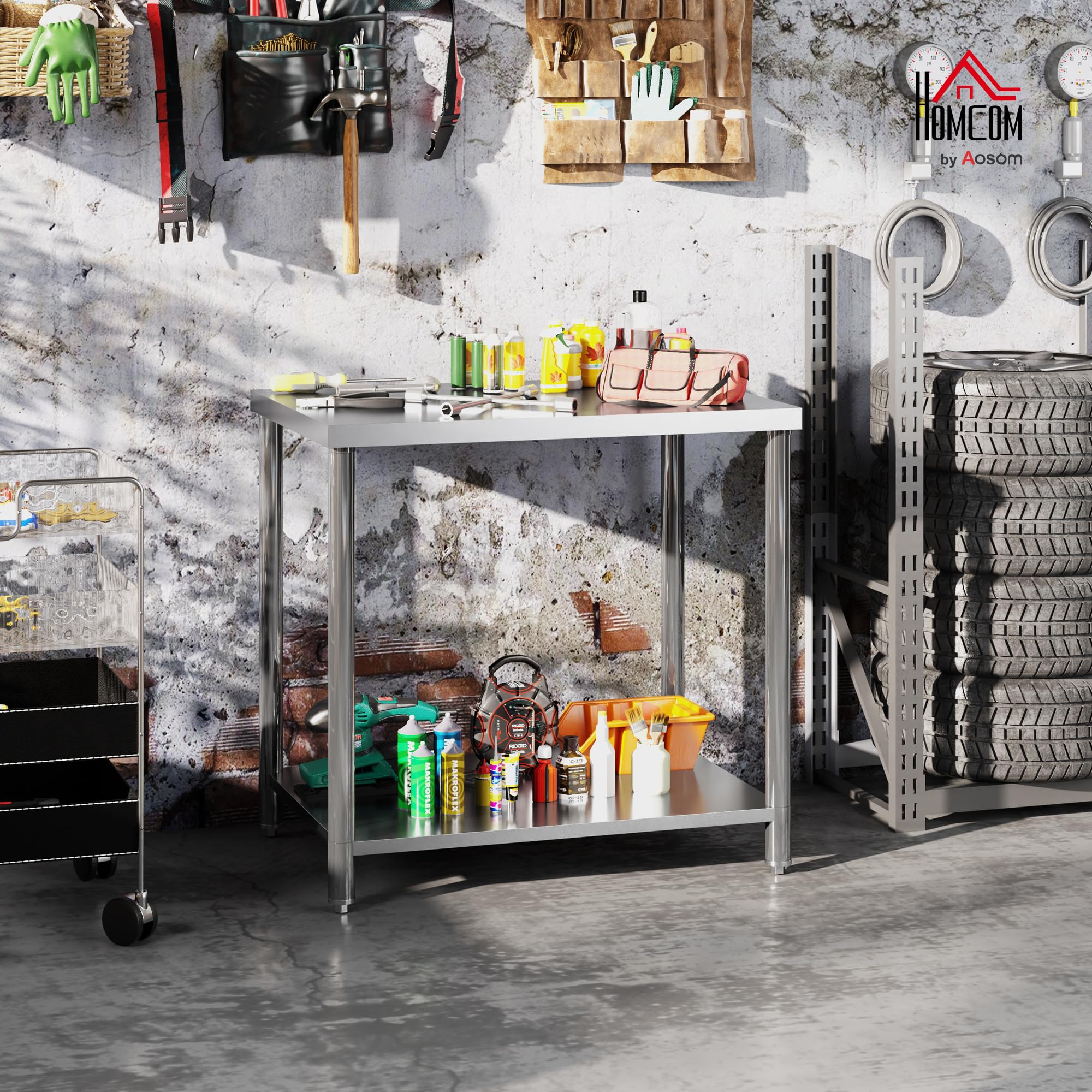 HOMCOM Table de Travail en Acier Inoxydable Table de préparation 2 étagère, Plan de Travail pour Cuisine, Garage, Jardin, 90 x 60 x 86 cm, argenté