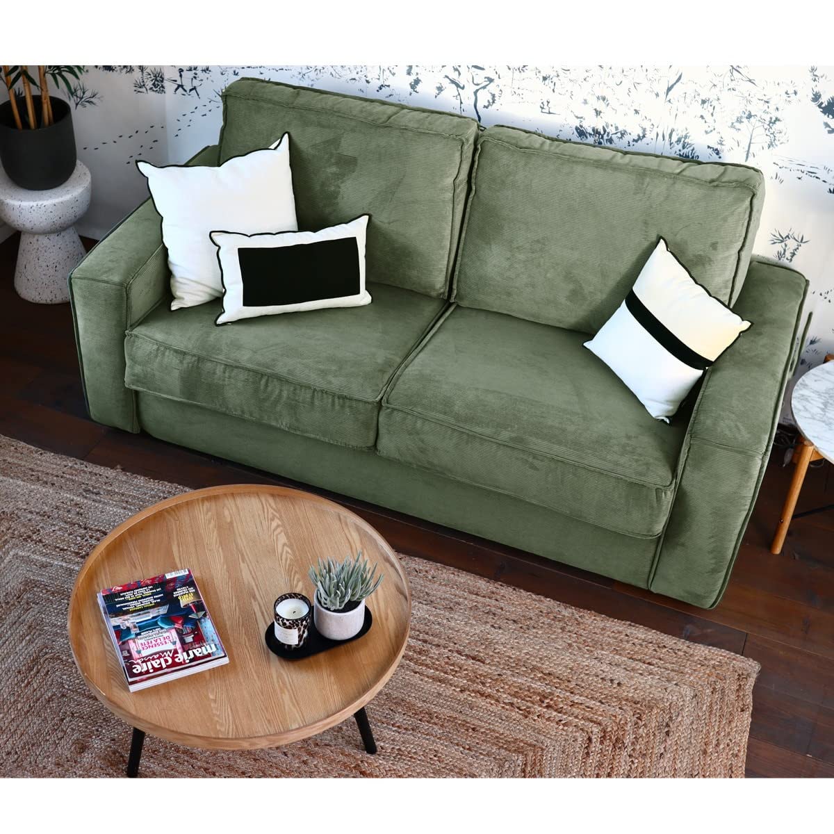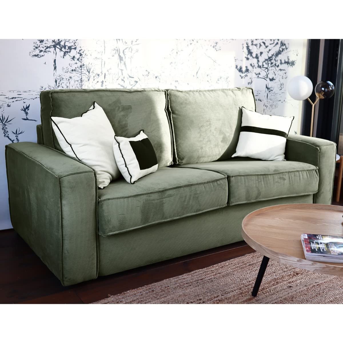 HOMIFAB Canapé Convertible 3 Places en Velours Fines côtes Vert - Ouverture Express - Couchage Quotidien - Matelas HD 140 x 190 - Mattia