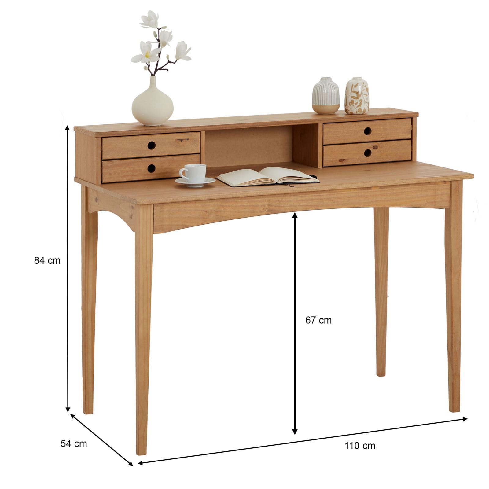 IDIMEX Bureau secrétaire Milano en pin Massif avec 4 tiroirs et 1 Niche, Bois lasuré Brun