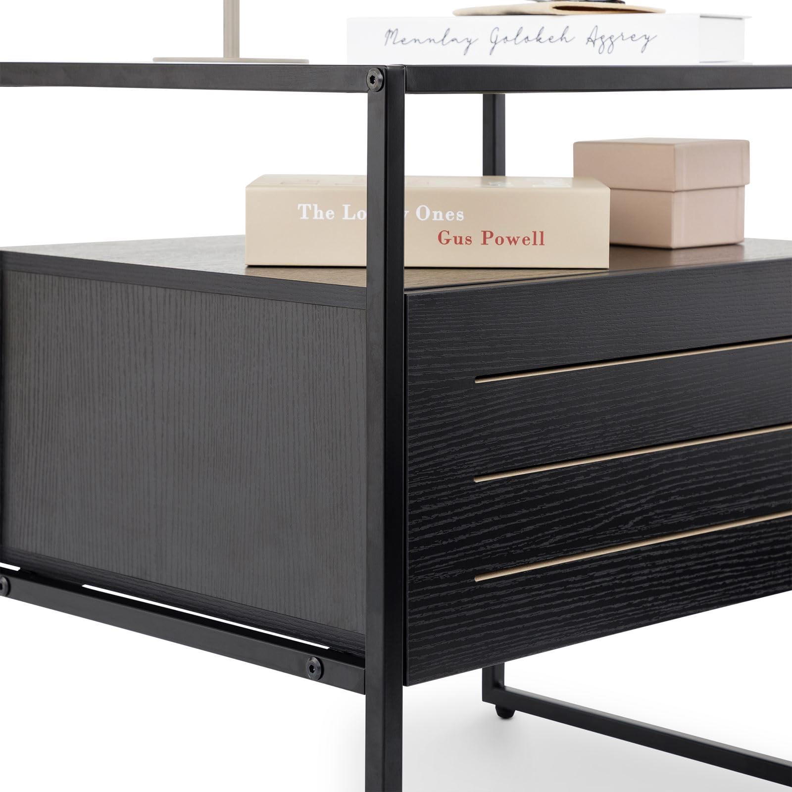 - Style moderne industriel : Son design moderne avec plateau en verre et sa structure géométrique en métal font de ce meuble un atout déco tendance dans votre chambre.