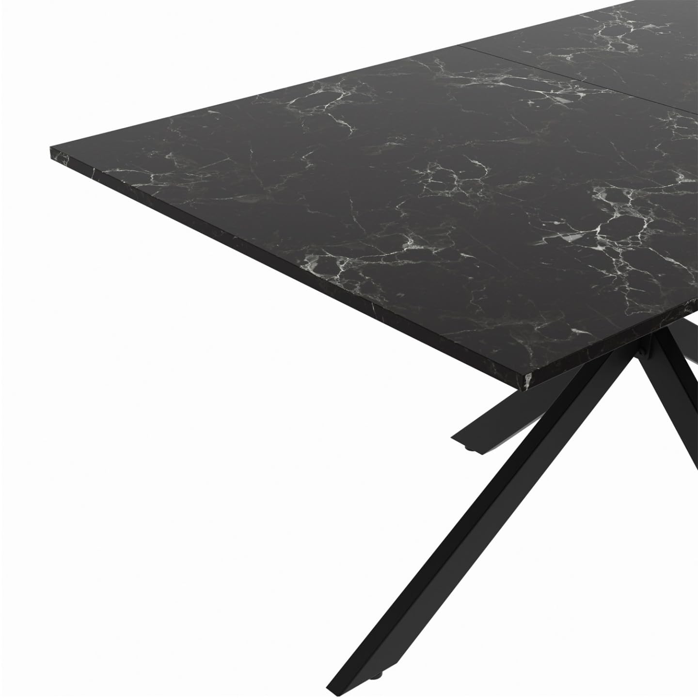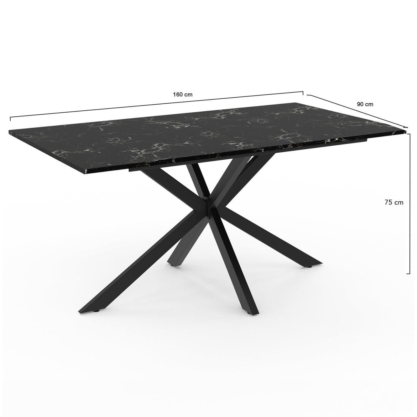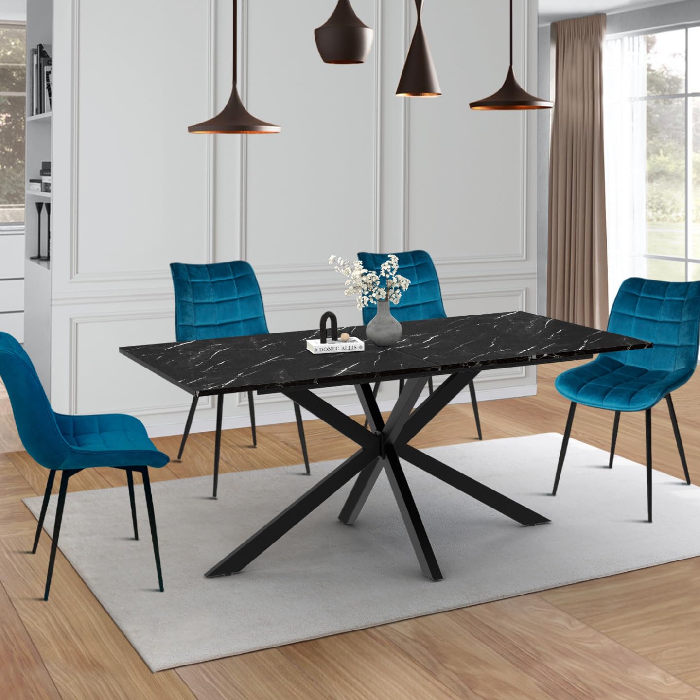 IDMarket - Table à Manger Rectangle Alix 8 Personnes Pied araignée Noir et Plateau Effet marbre Noir Alaska 160 cm