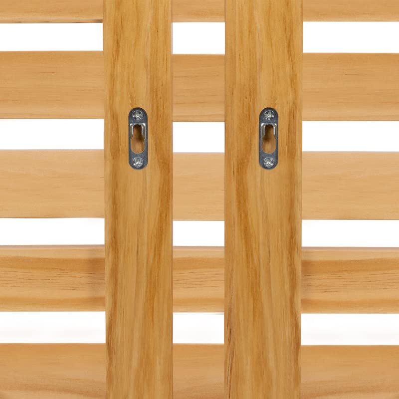 Craquez pour le look moderne de la tête de lit AVA au design bicolore effet bois clair et blanc. Cette tête de lit de 240 cm de long habillera votre mur et apportera une touche cossue et design à votre lit.Adaptable à tous les lits 140 cm et 160 cm, la tête de lit AVA est facile à installer. Grâce à son design fin et ses accroches murales, elle permet également un gain de place dans votre chambre à coucher.La tête de lit AVA est également composée de 4 tablettes de chevet blanches modulables que vous pouvez placer à la hauteur qui vous convient le mieux. Vous pourrez ainsi y déposer vos affaires personnelles, nécessaire de nuit, réveil ou encore lampes de chevet.Sa hauteur de 62 cm vous permet de vous adosser confortablement avec vos oreillers pour lire ou regarder votre série préférée. Pour un effet encore plus cocooning dans votre chambre, choisissez d'entrelacer une guirlande lumineuse sur le haut de votre tête de lit et profitez ainsi d'une ambiance chaleureuse toute la soirée. Dimensions de la tête de lit lattes AVA en bois clair et étagères blanchesDimensions globales : Longueur 240 cm x largeur 23,5 cm x Hauteur 62 cmDimensions d'une étagère : L.32,5 x l.20,5 x H.1,8 cmMatériaux : Panneaux de particules revêtement mélaminéColoris : Bois clair et étagères blanchesEspace entre chaque latte : 2 cmLongueur centrale entre les étagères : 160 cmKit de fixation inclusÀ monter soi-mêmeRetrouvez également nos autres têtes de lit disponibles sur notre boutique en ligne.