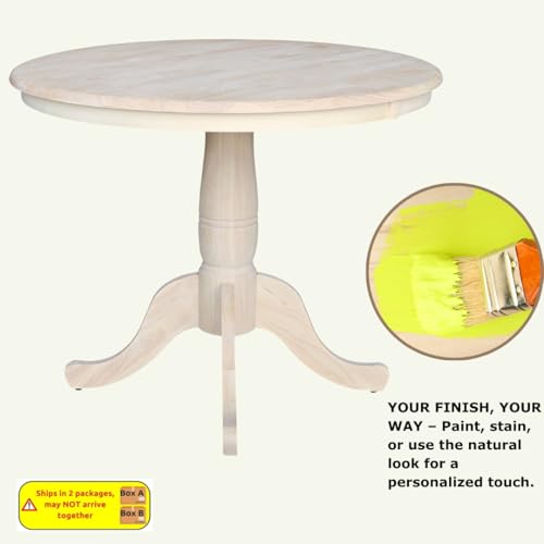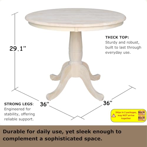 International Concepts IC Table de Salle à Manger Ronde en Bois véritable Massif, Bois de parawood Robuste, 91,4 cm, Brut
