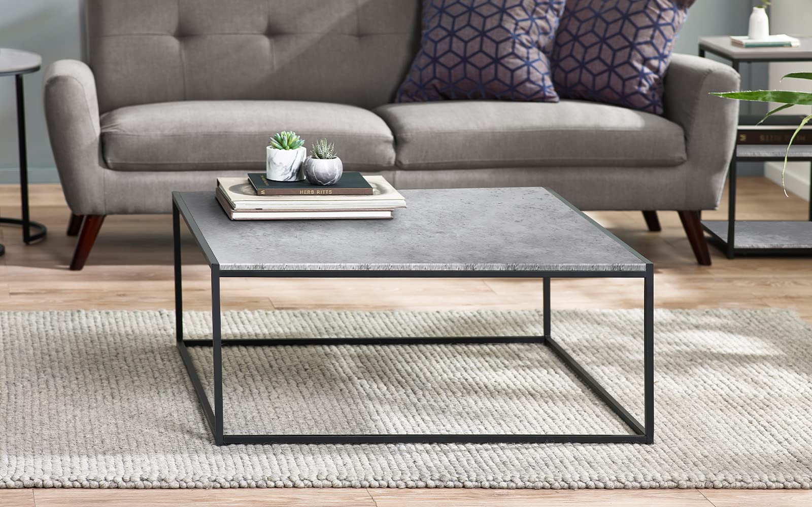 Julian Bowen Table basse carrée Staten, effet béton/noir