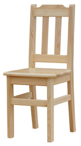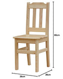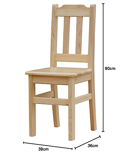 La chaise est entièrement fabriquée en bois de pin. Chaque meuble est fabriqué à la main, de sorte qu'il est toujours très soigné et soigneusement travaillé. La chaise est livrée dans son ensemble. La chaise s'adapte parfaitement à la cuisine, à la salle à manger ou au salon. Version laquée : la chaise est revêtue de vernis incolore. Dimensions de la chaise : hauteur : 90 cm, profondeur : 36 cm, largeur : 39 cm, hauteur d'assise : 45 cm