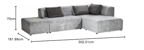 Détails: Ce canapé d'angle permet d'accueillir trois personnes et son pouf inclus vous offre un siège supplémentaire ou un repose-pieds. Toute la petite famille va ainsi être installée confortablement pour passer des bons moments. Les 3 coussins sont livrés avec le canapé. Dimensions de la méridienne : 117 x 182 cm. Assise centrale : 120 x 100 cm. Pouf : 68 x 100 cm. Hauteur d'assise : 40 cm. La position de l'angle indiquée dans le titre du produit est celle quand vous êtes en face du canapé. Fabriqué en Europe.