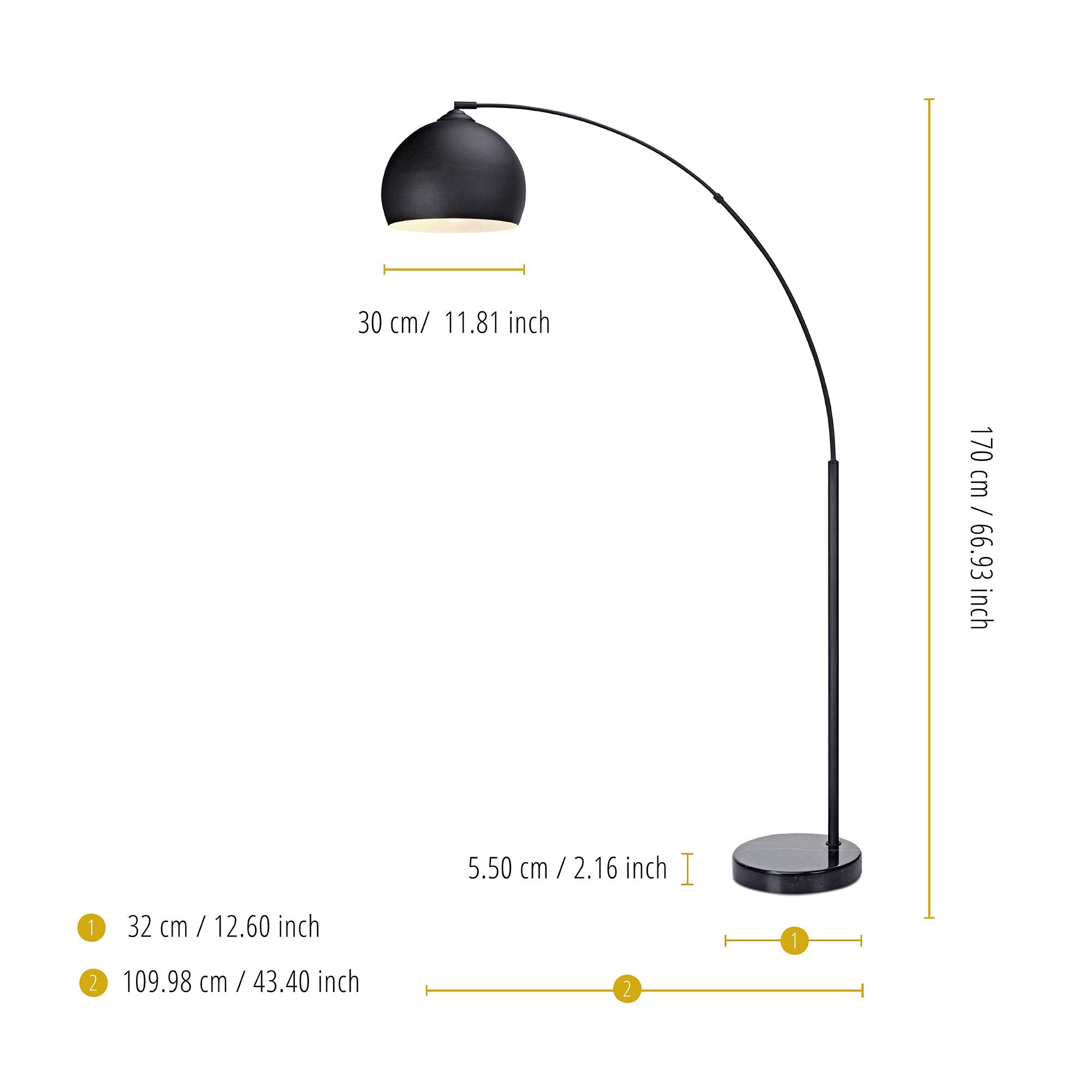 Lampadaire Arquer arc lampe de salon abat-jour pied marbre noir Teamson Home VN-L00013-EU