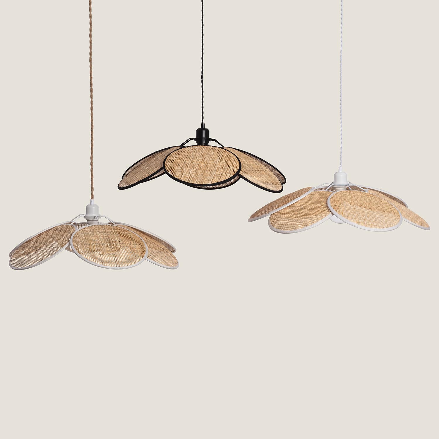 Détails: La Suspension Rotin deviendra le centre d'attention. Fabriqué avec des finitions de grande qualité. Grâce à son design et style, vous pourrez la placer dans des espaces aussi variés que des chambres, salons, réceptions, etc... Caractéristiques de la Suspension Rotin Cette suspension a un abat-jour composé de six feuilles de rotin circulaires qui ressemblent au dessin des pétales d'une marguerite, avec l'ampoule exposée à la place du pistil. La lumière émise par la Suspension Rotin dépendra de l'ampoule LED E27 que vous installerez. Vous pouvez ainsi choisir une lumière chaude, froide ou neutre en fonction de l'atmosphère que vous désirez créer. Une option intéressante est d'opter pour certaines ampoules RGB ou CCT qui vous donneront un plus de versatilité. Nécessite 1 Ampoule E27 NON INCLUSE dans le produit. Nous vous conseillons d'éviter l'utilisation de produits chimiques pour le nettoyage.