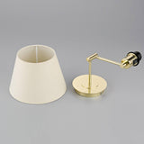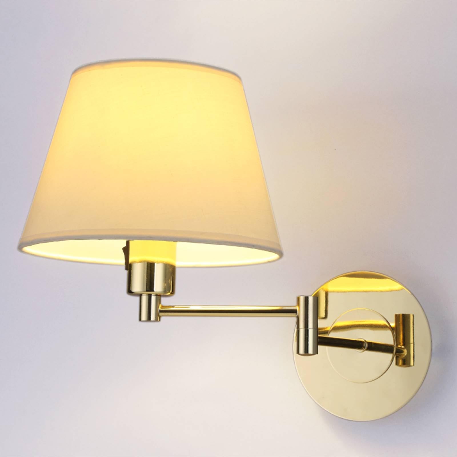 Détails: L'applique Pola se caractérise par un aspect plutôt classique, notamment grâce à sa structure couleur laiton et à son abat-jour en tissu crème. Un interrupteur est intégré et la structure est extensible.