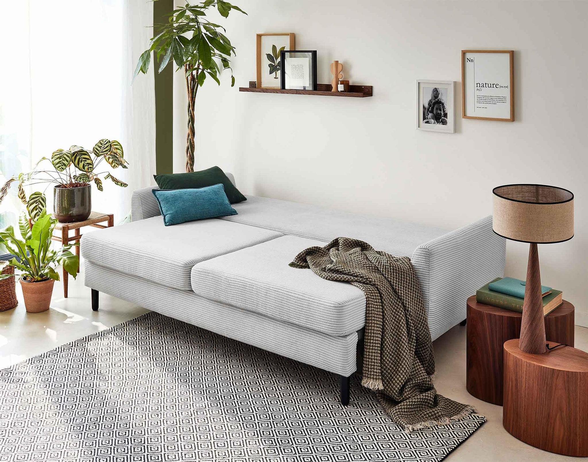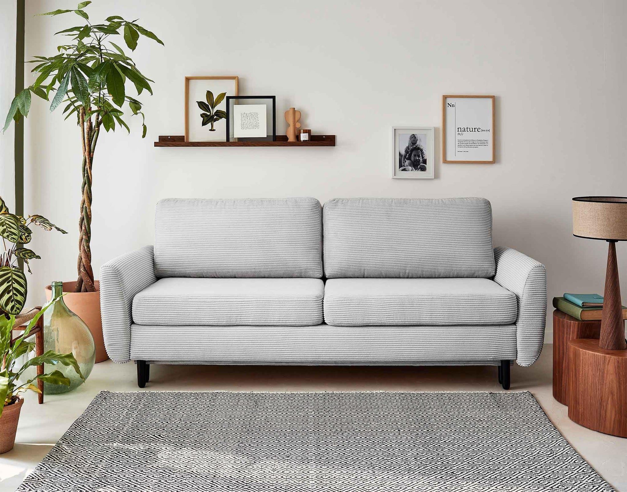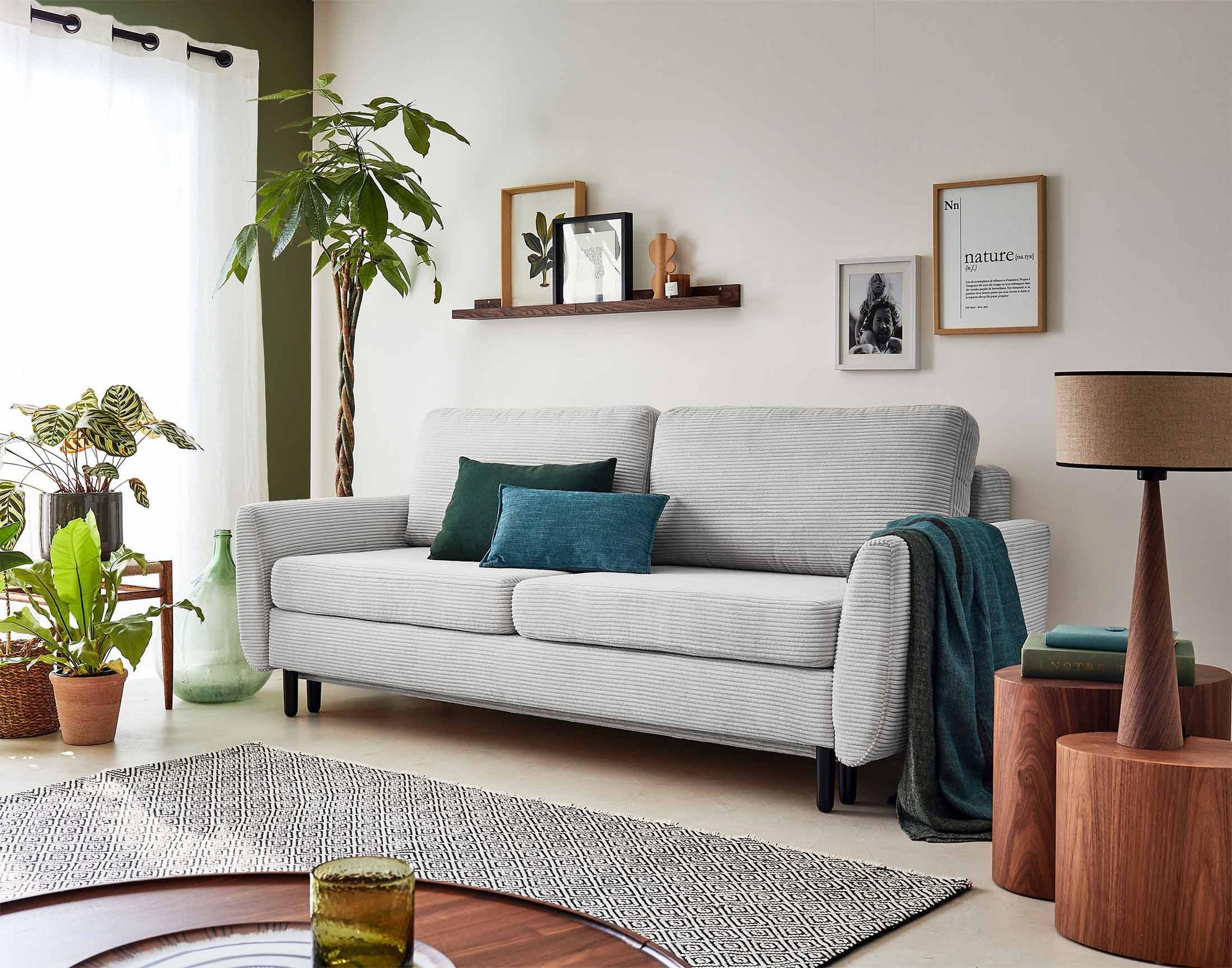 Lisa Design - Canapé Convertible avec Coffre Dan en Velours Côtelé - Canapé Lit - Sofa Gris Clair 3 Places - Salon