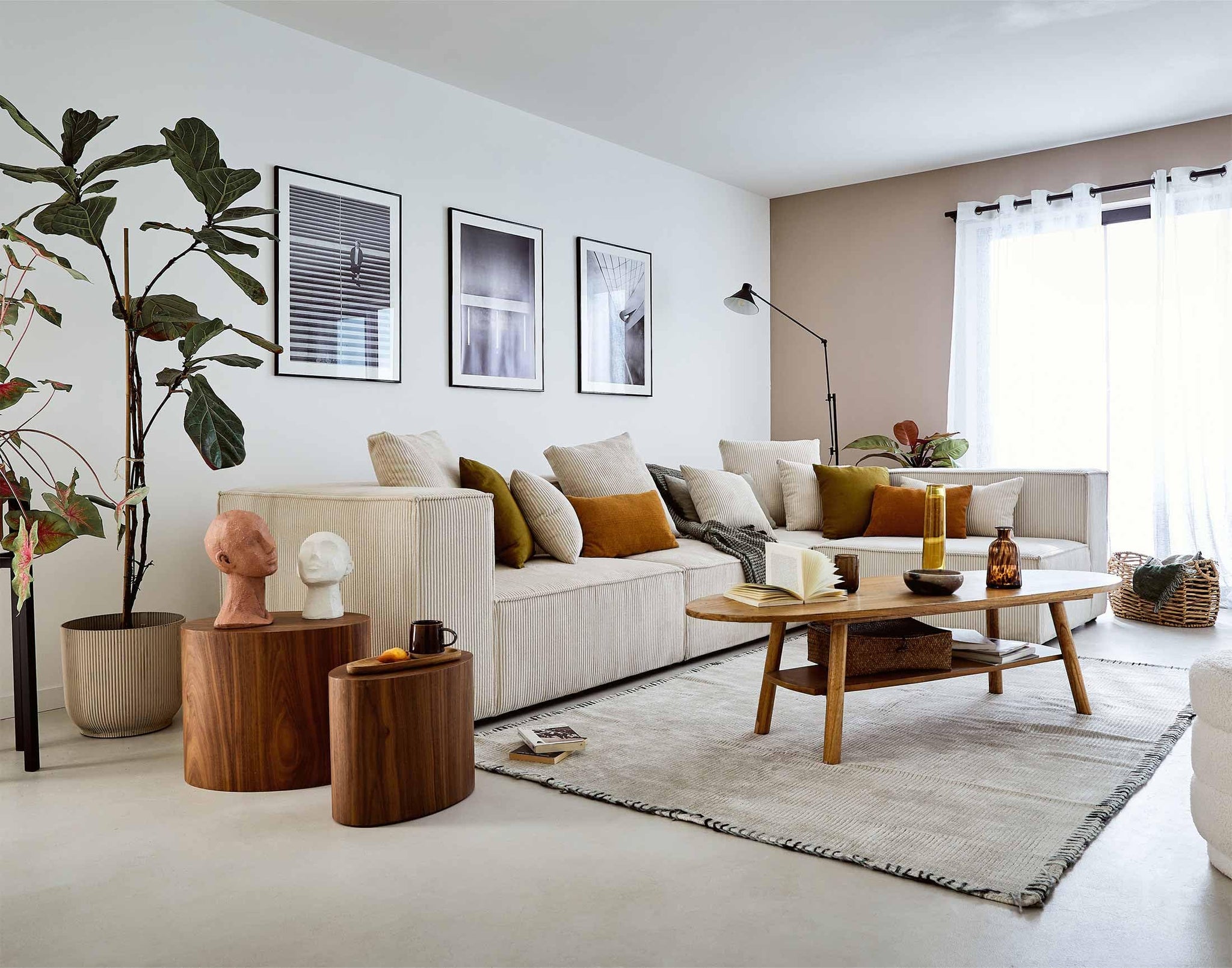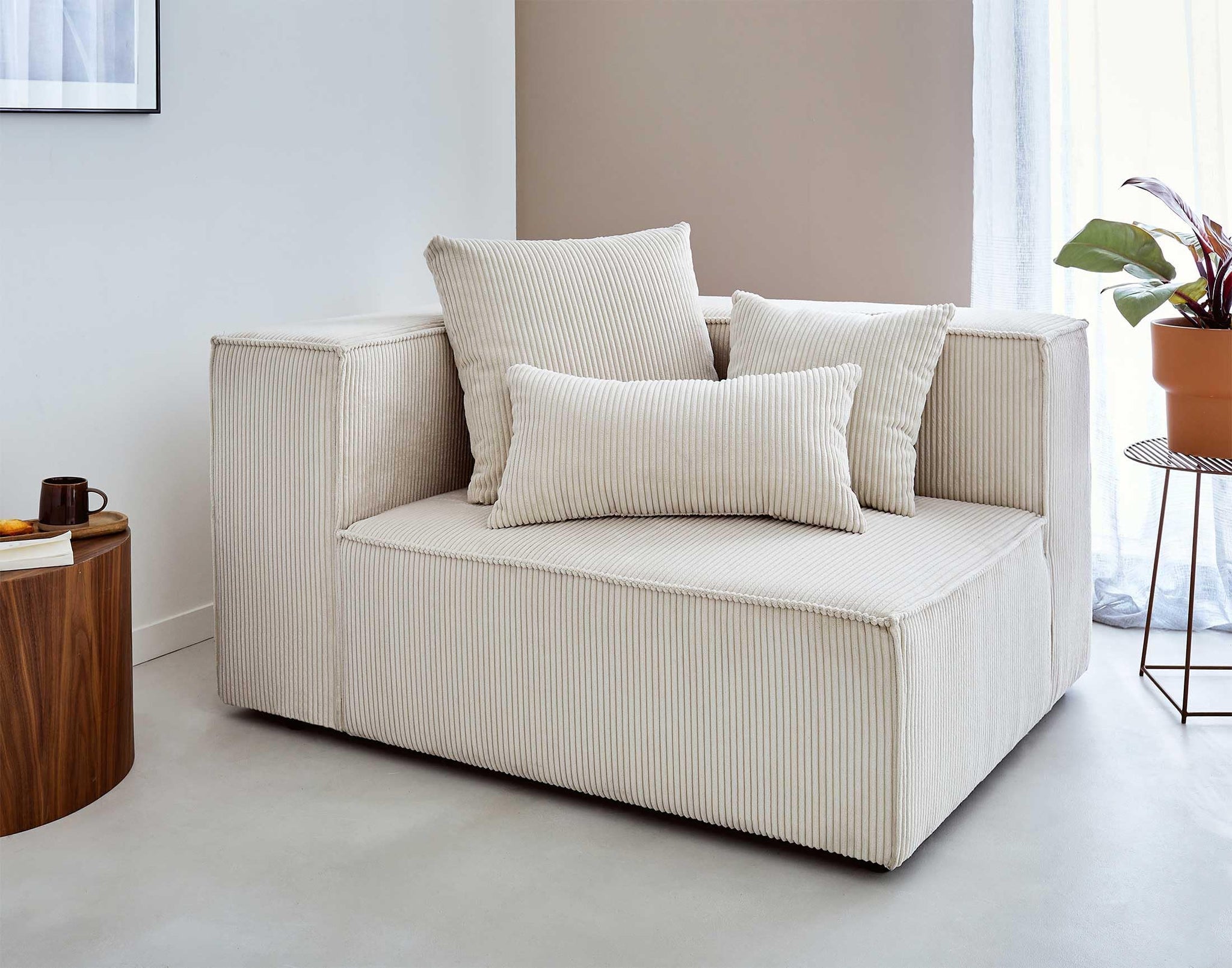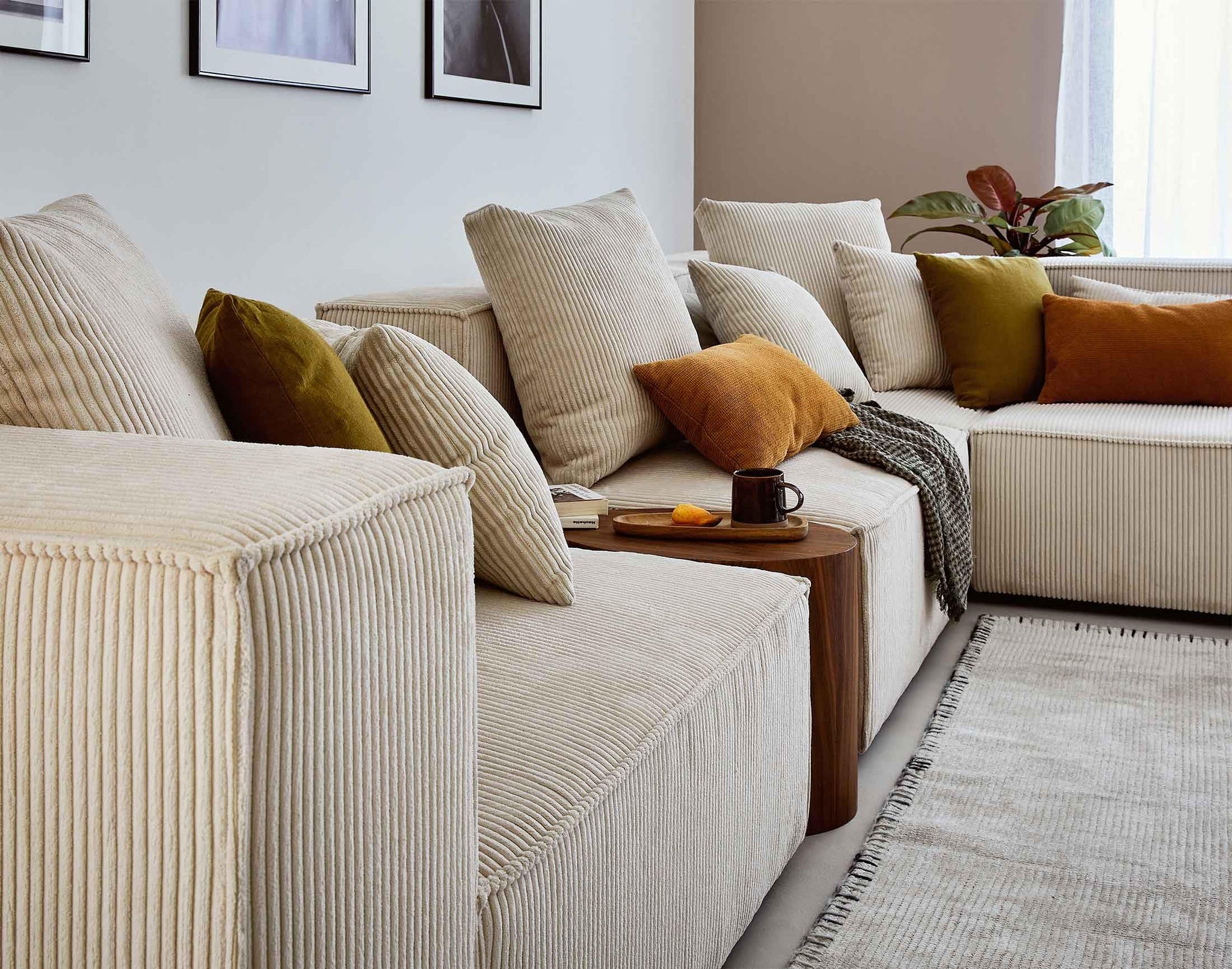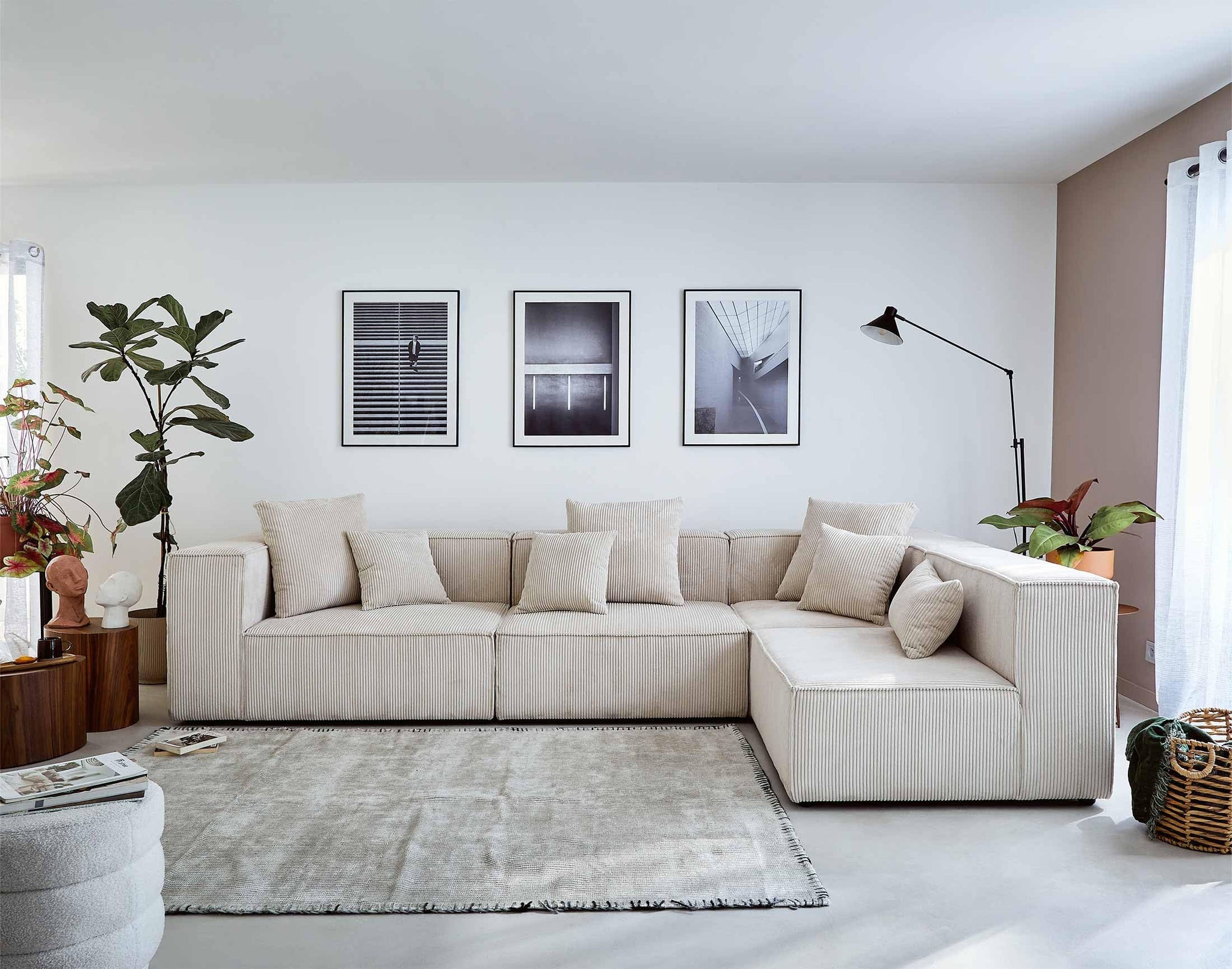 Lisa Design - Canapé Modulable d'angle Droit - Colombine en Velours Côtelé - Sofa Beige 5 Places - Salon