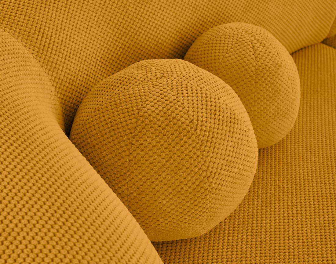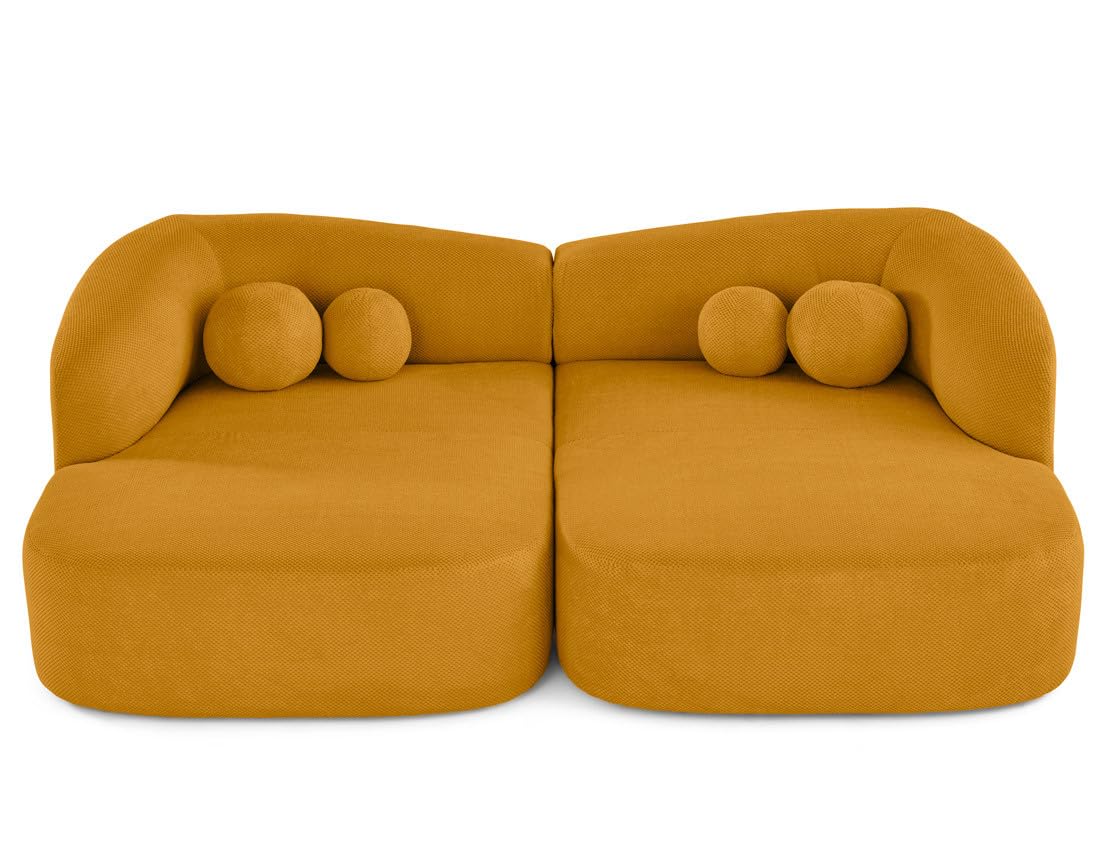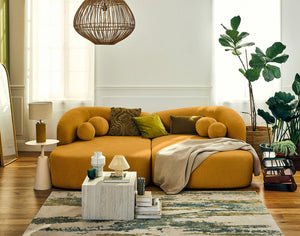 Lisa Design - Charles - canapé Droit 4 Places avec Double méridienne - Assise Profonde - en Velours texturé, Jaune