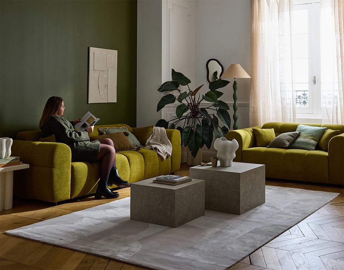 - [revêtement tendance] disponible en tissu, velours ou bouclette pour un style affirmé.