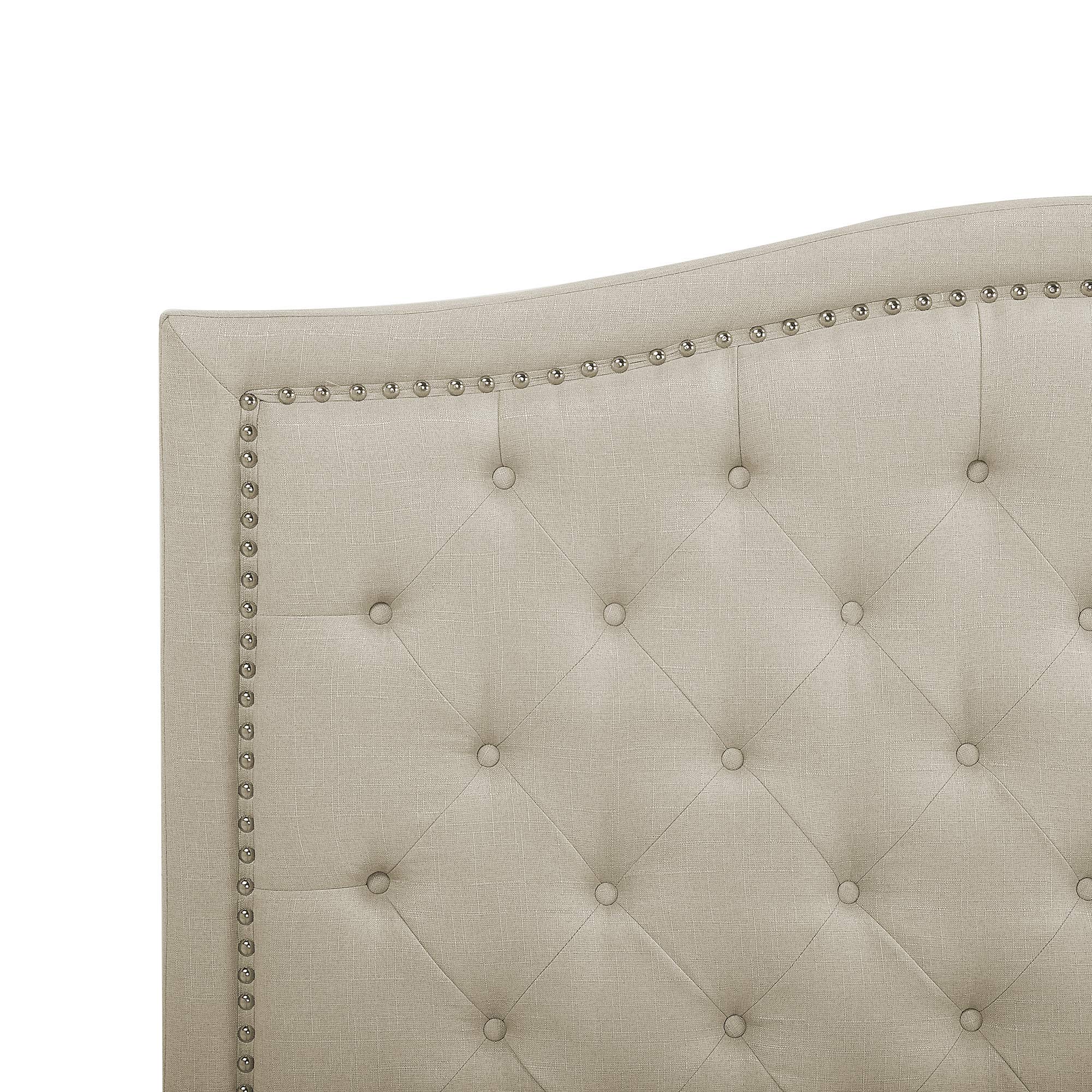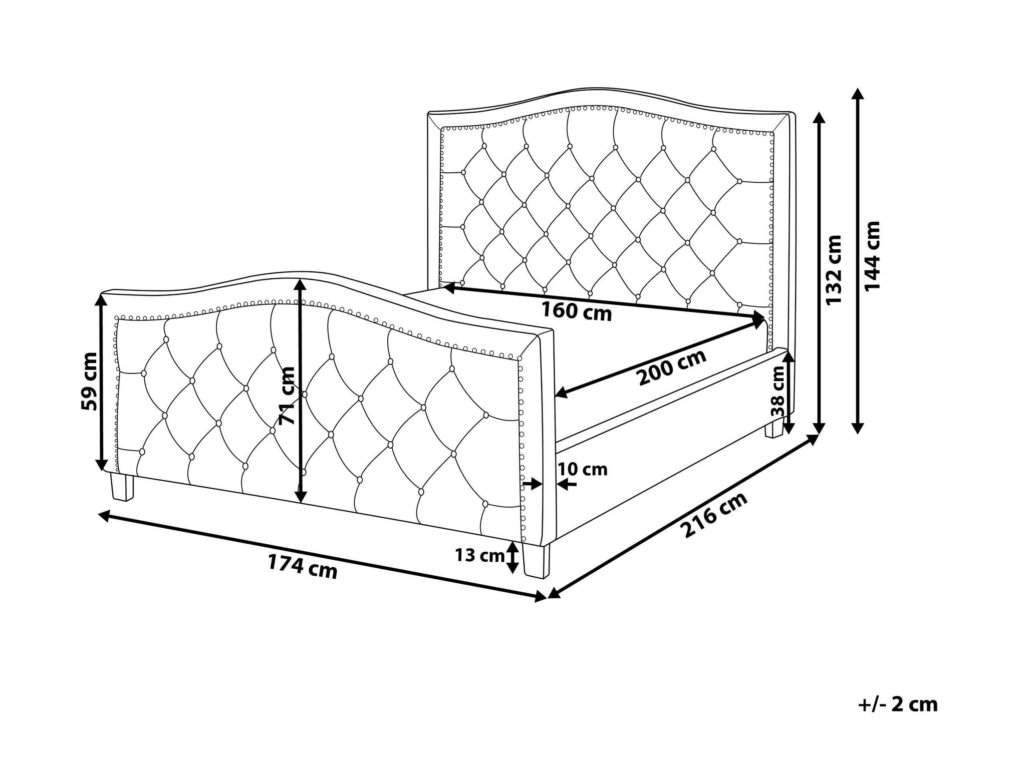- La tête de lit et le pied de lit chameau disposent d'une touffe de boutons et d'une bordure cloutée