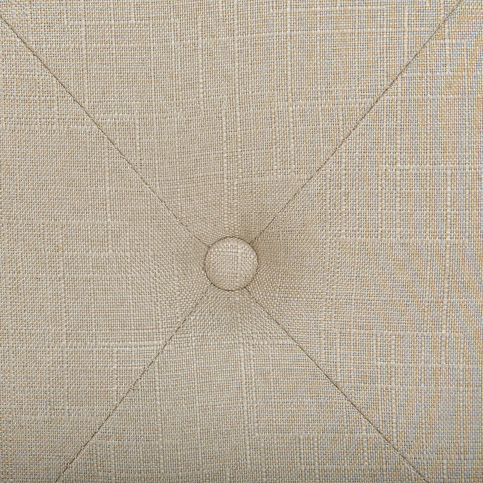 Sommier à lattes en lin boutonné. Ce cadre de lit, inspiré des formes vintage, est une véritable pièce maîtresse pour toute chambre glamour ou traditionnelle. La pièce dispose d'une construction en bois durable recouverte de lin facile d'entretien avec un ton beige apaisant. La tête de lit et le pied de lit de style chameau sont ornés d'une touffe de boutons classique accompagnée d'une bordure brillante de tête de clou. Grâce au sommier à lattes, le lit garantit une répartition uniforme du poids corporel, ce qui permet un sommeil sain et sans perturbation.