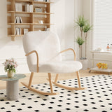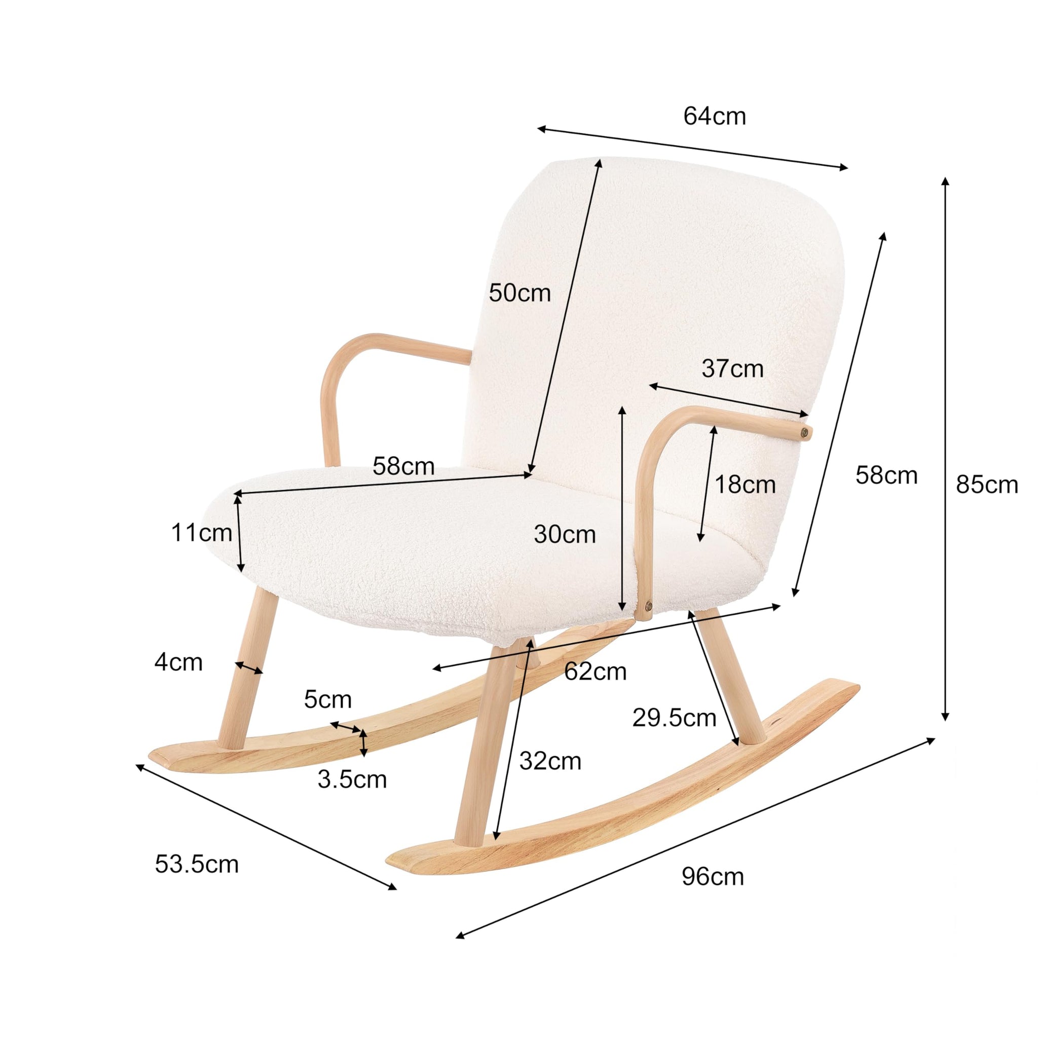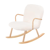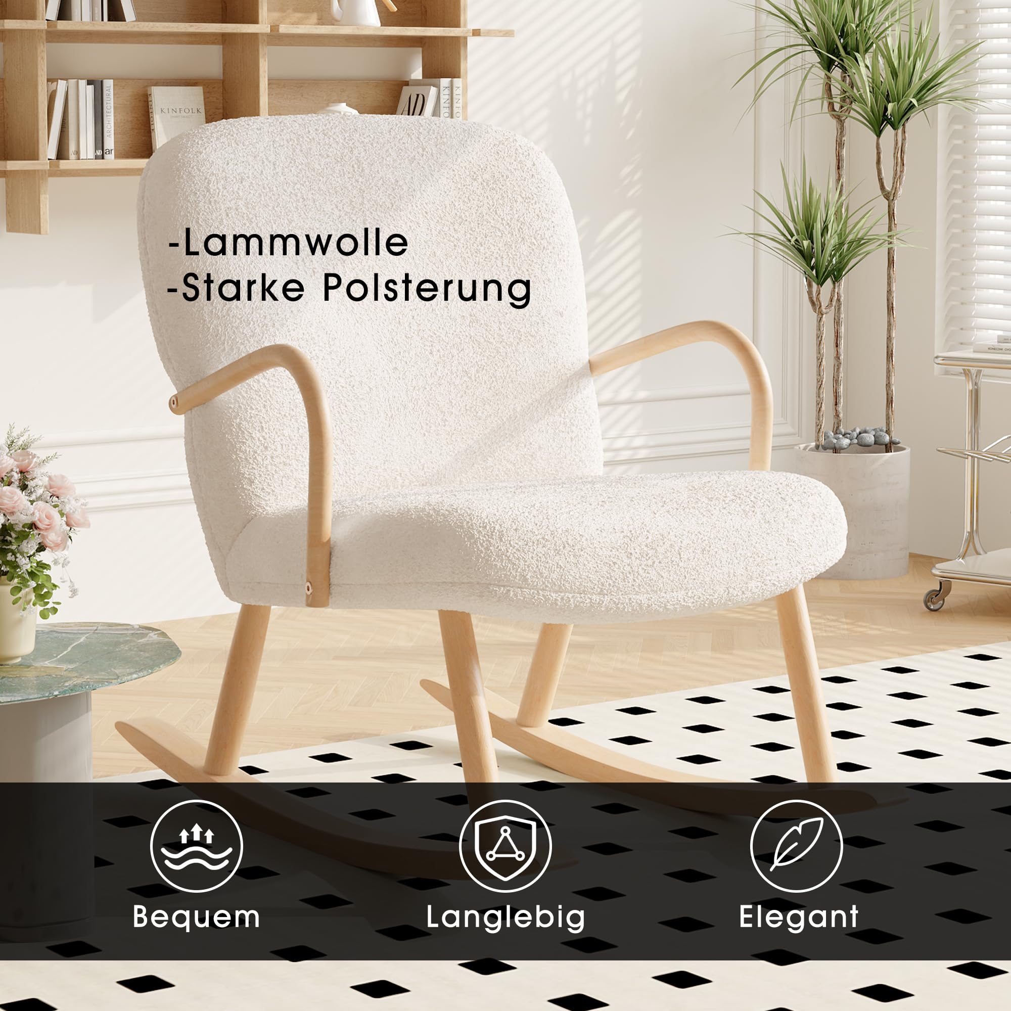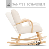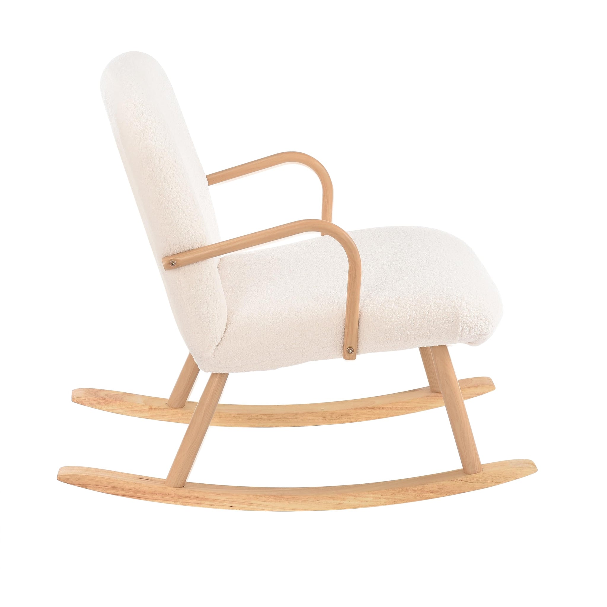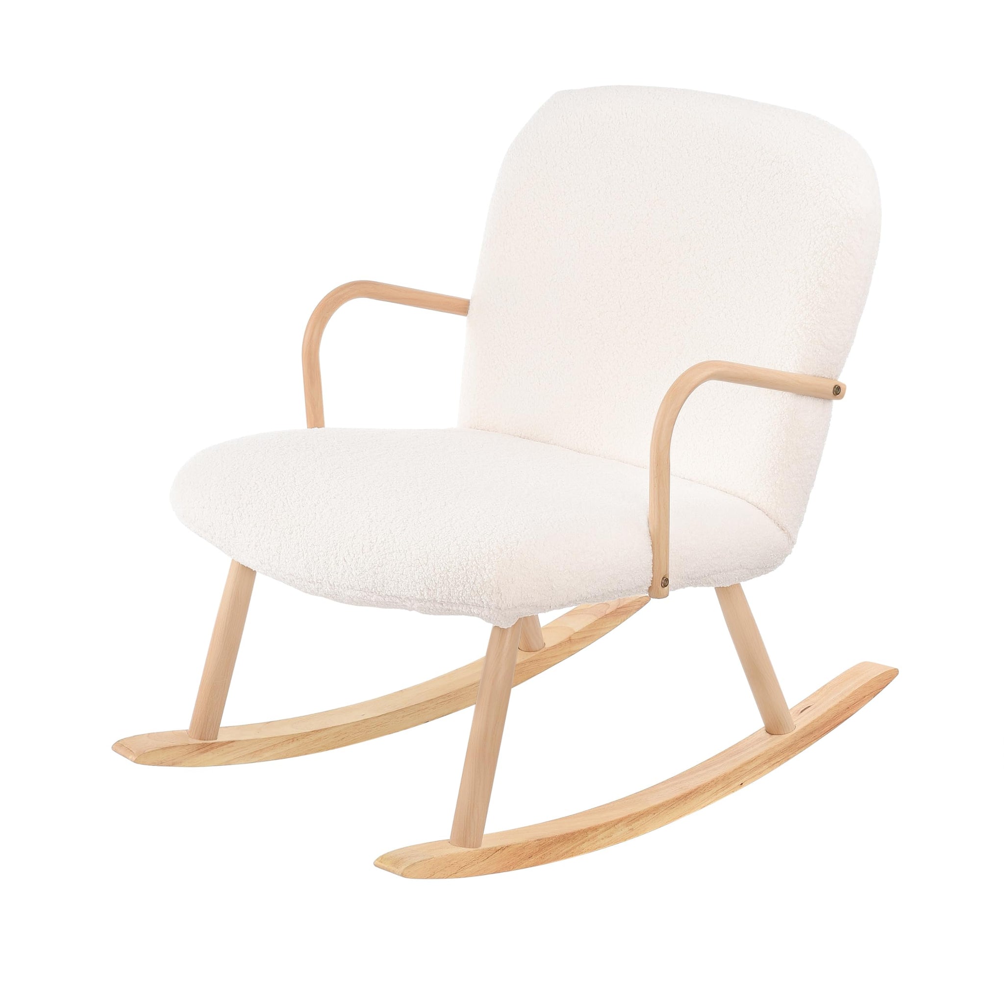 LONELYO Rocking Chair Sherpa Blanc cassé avec accoudoirs en Bois, avec Pieds en hêtre Massif, Convient pour Salon Chambre Appartement (Pas de pédales)