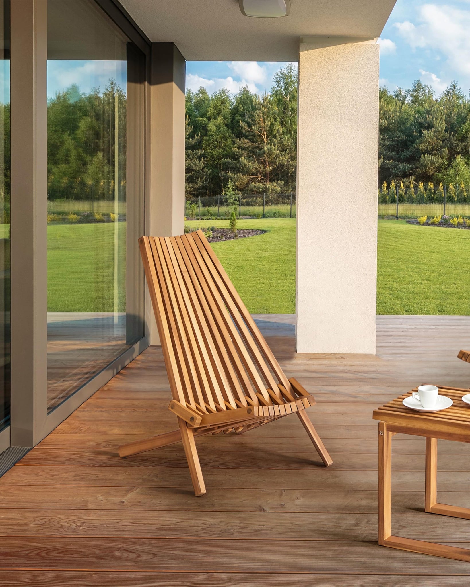 Caractéristiques clés: Chaque pièce est unique, grâce au grain et nœuds naturels, Style traditionnel avec une touche moderne, Décoratif et fonctionnel, Une conception solide et une excellente finition, Matières robustes faciles à entretenir, Pour préserver la qualité du produit, il faut le protéger de l'eau et de la pluie., Pliant et facile à ranger