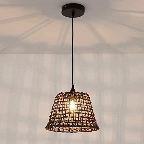 - La suspension a un abat-jour décoratif, tressé à la main en rotin aux couleurs naturelles, marron foncé. Il s'inscrit parfaitement dans les tendances contemporaines, naturel, bohème, bord de mer, maison de campagne