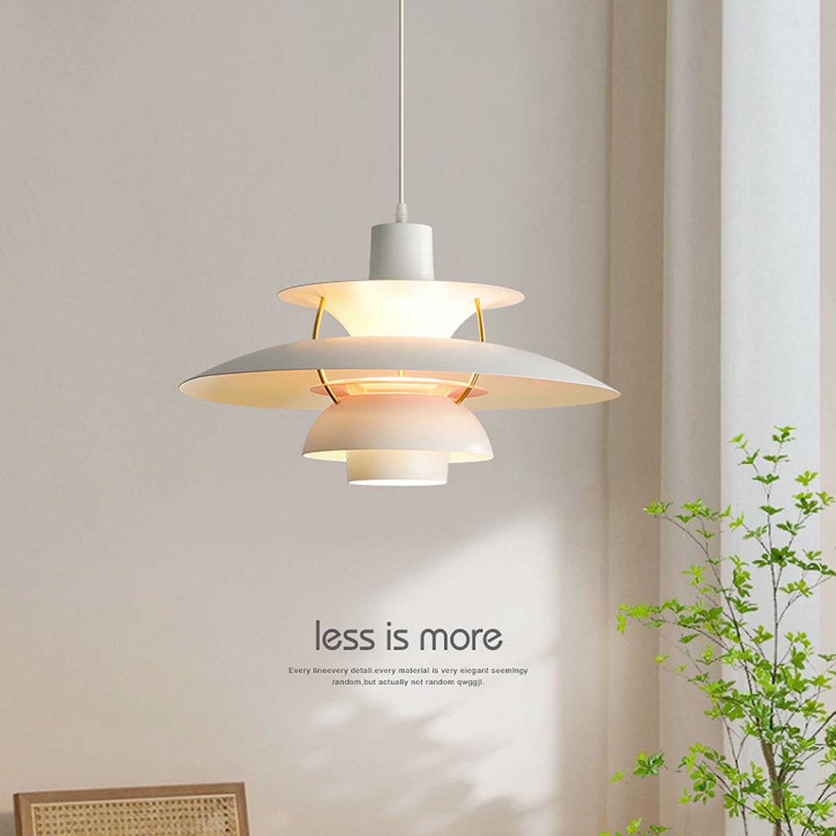 Lustre Minimaliste Moderne, Style Nordique, Suspension Danoise PH5 avec Abat-Jour Imitation OVNI, Luminaires Suspendus Au Plafond pour Chambre à Coucher Salon Salle à Manger Cuisine(50cm,White 2)