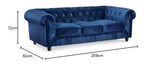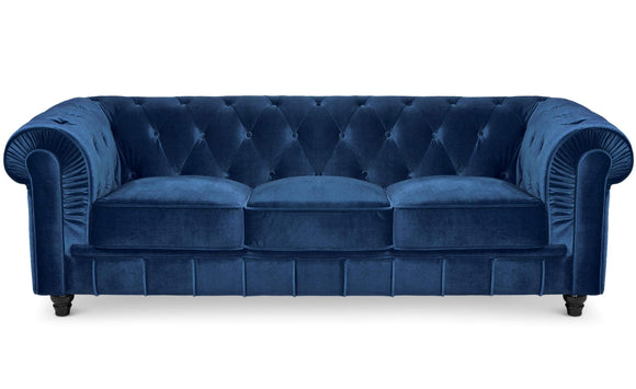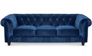 Menzzo Grand canapé 3 Places Chesterfield Velours Bleu