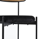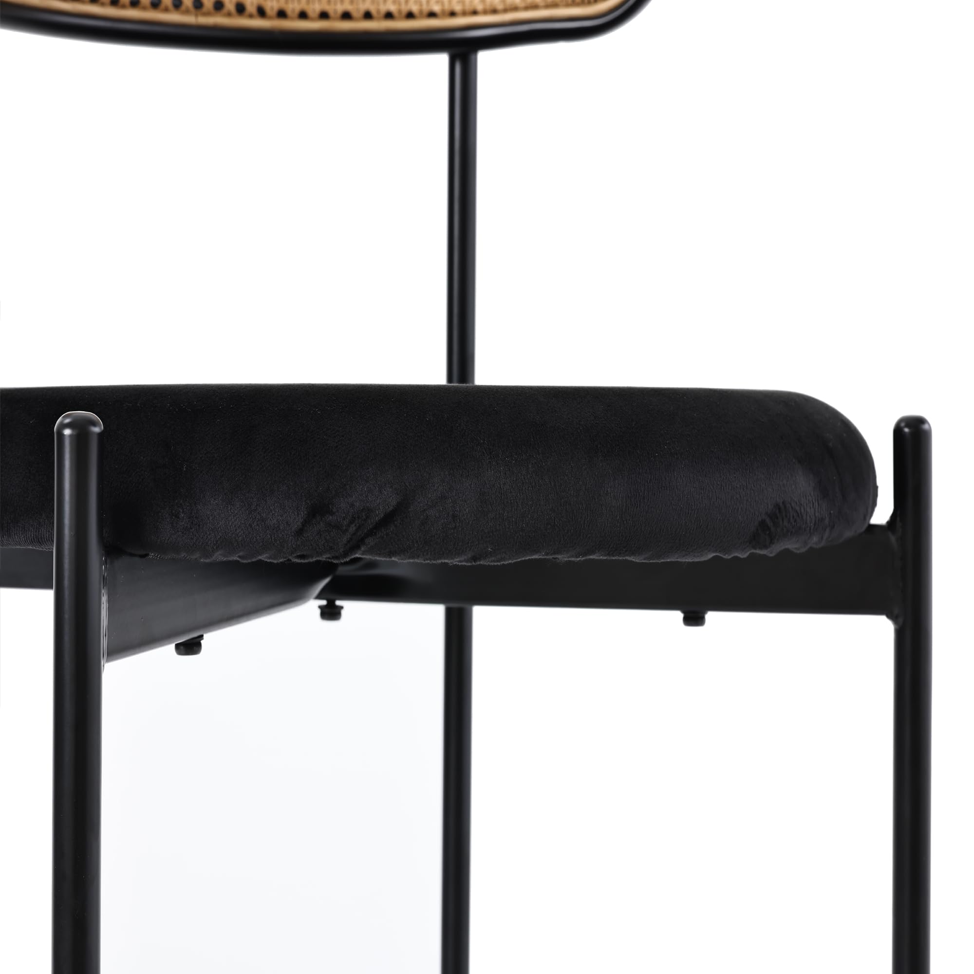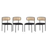 Merax Lot de 4 Chaises de Salle à Manger, Modernes Chaise Cuisine avec Dossier en Rotin et Pieds en Métal, pour Salle à Manger, Salon, Chambre, Velours, Noir