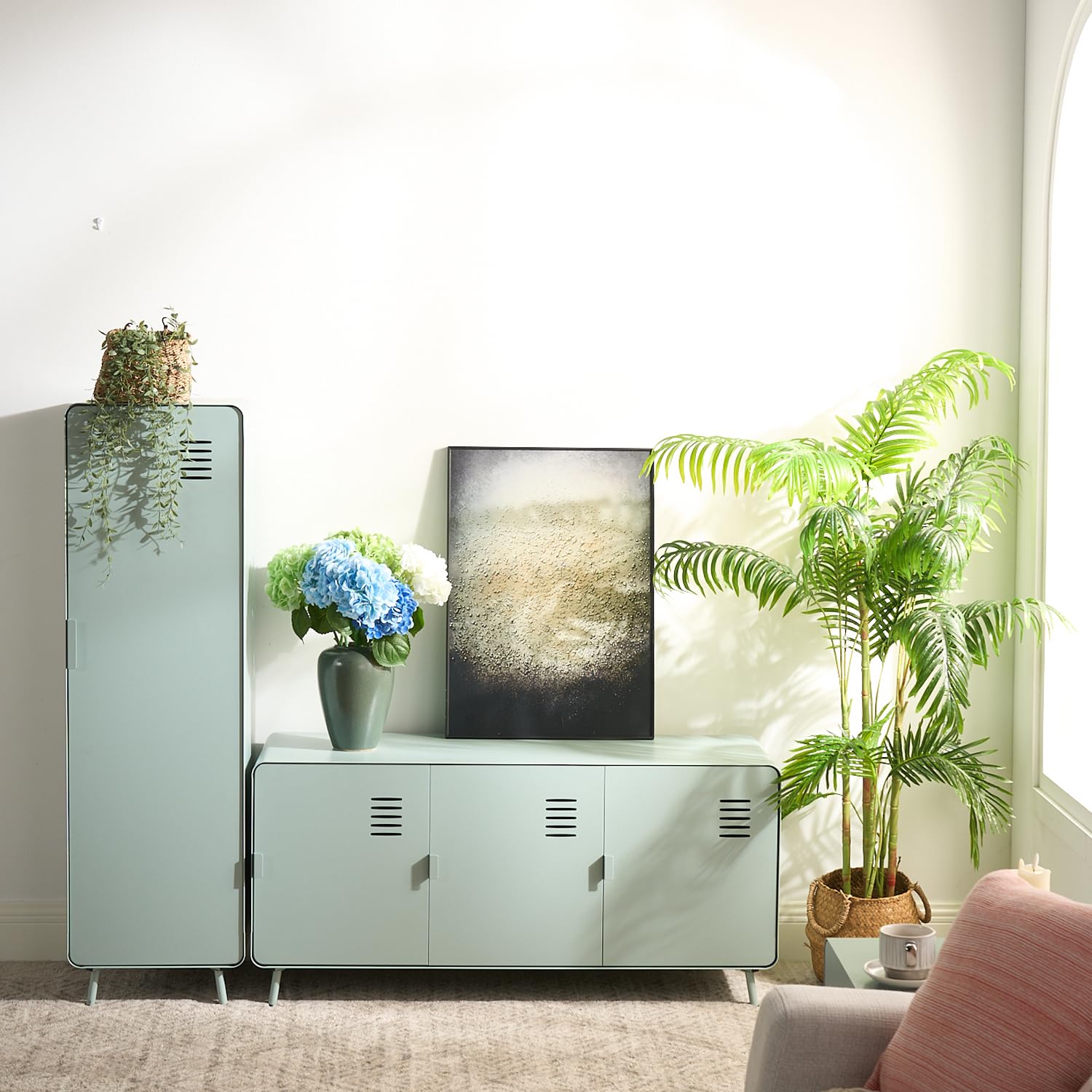 MEUBLE COSY Armoire Meuble de Rangement avec Portes et Étagères Caisson de Bureau en Métal pour Salon Chambre Entrée, Industriel, Vert Clair, 40x40x137cm