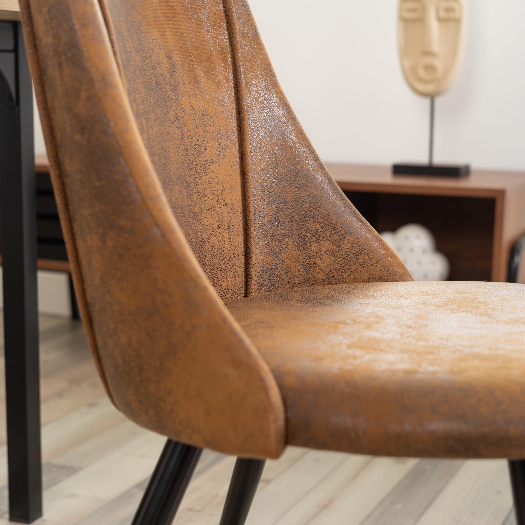 MEUBLE COSY Lot de 4 Chaises de Salle à Manger Rétro Fauteuil Assise rembourrée en suédine Pieds en métal pour Cuisine Salon Chambre Bureau, Style Industriel, Marron, 52,5x49,5x83cm