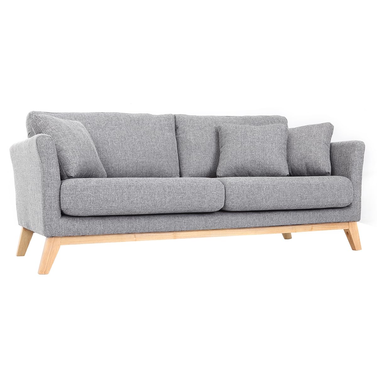 Miliboo Canapé scandinave déhoussable 3 Places en Tissu Gris Clair et Bois Clair Oslo