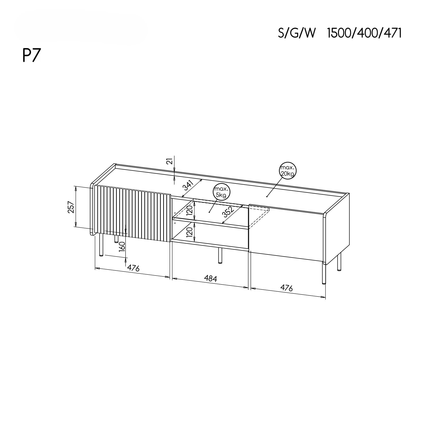 - Dimensions : H : 47 cm / L : 150 cm / P : 40 cm Données de transport : Box1 : 24.8kg 43 x 159.5 x 9 cm