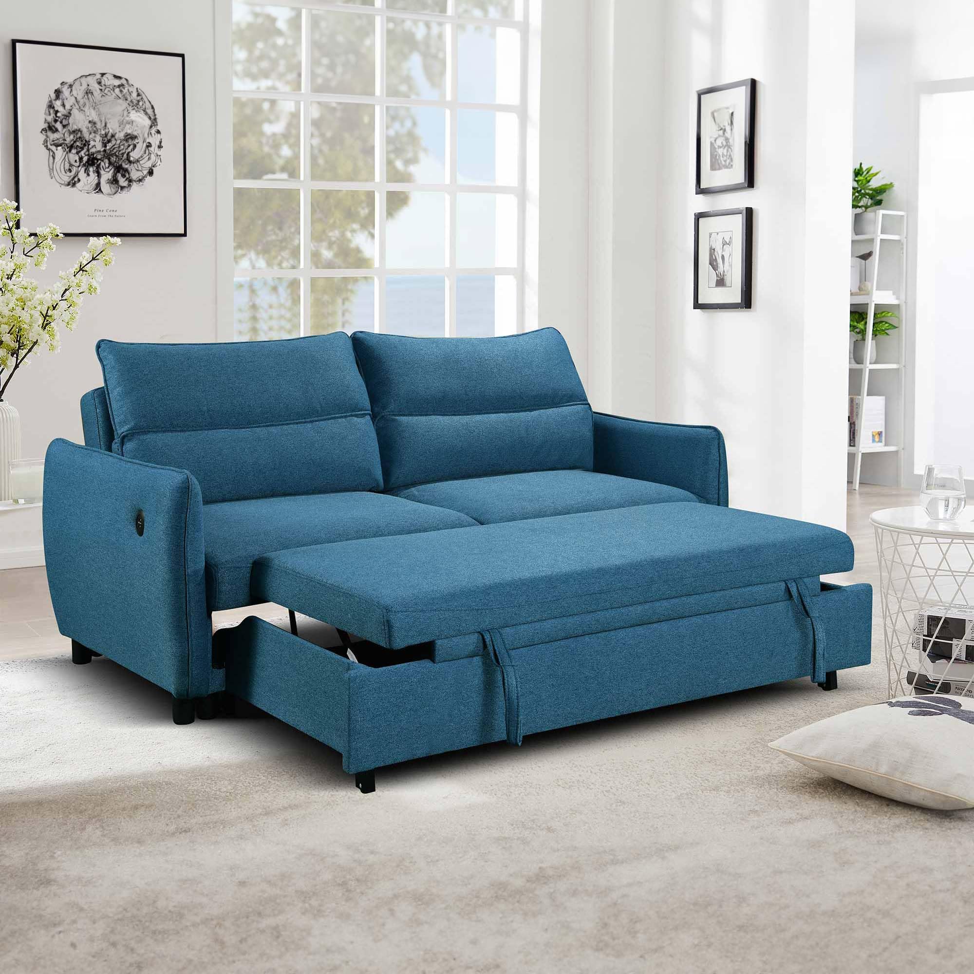 Mobilier-Deco Arlen - Canapé Convertible 3 Places en Tissu Bleu