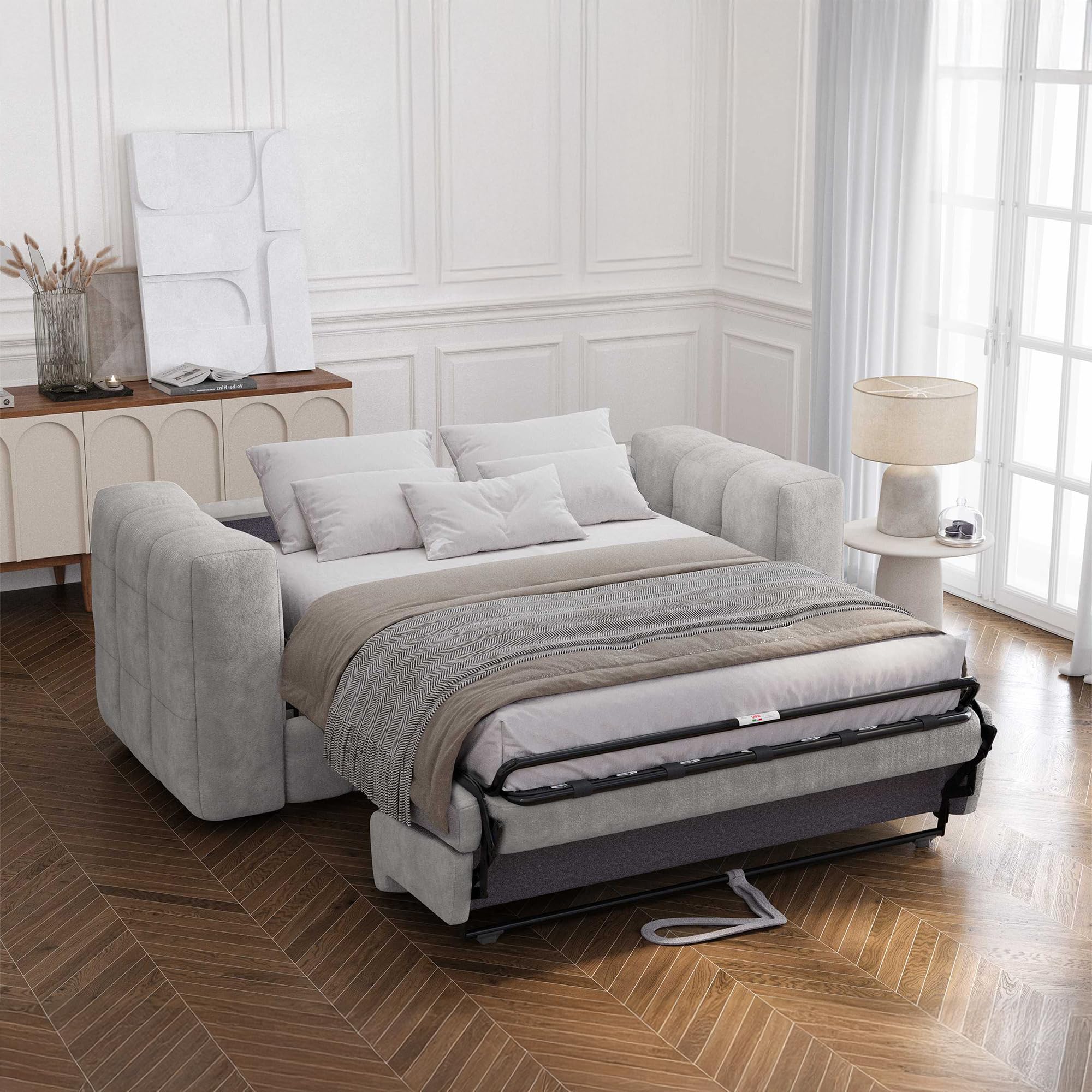 Mobilier-Deco Daria - Canapé 3 Places Convertible rapido en Tissu matelassé Gris Matelas 14 cm
