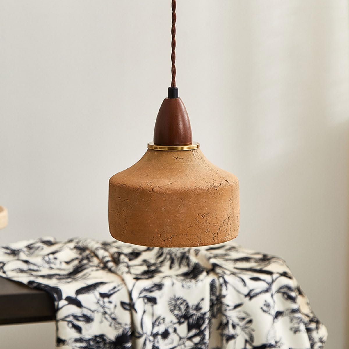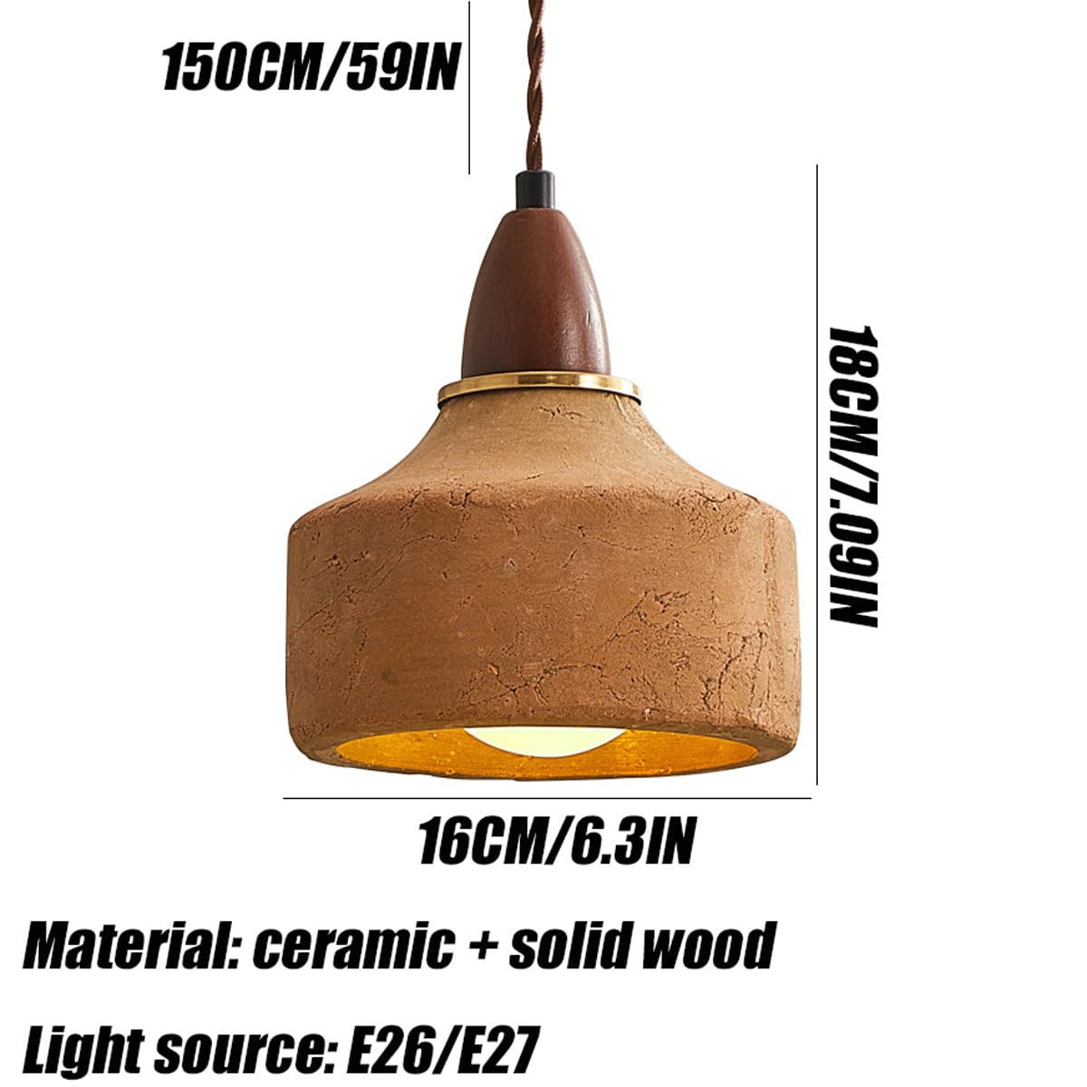 MODEBHD Lampe à suspension simple en béton Wabi Sabi Lampe à suspension en céramique couleur café, Lampe à suspension en bois massif de style japonais Lampe à suspension réglable en terre cuite du mil